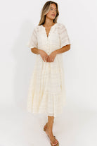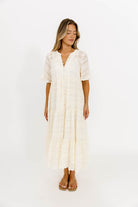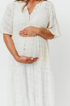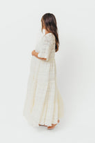 Kristin Tiered Woven Maxi Dress with Detachable Liner in Ivory - Bump Friendly