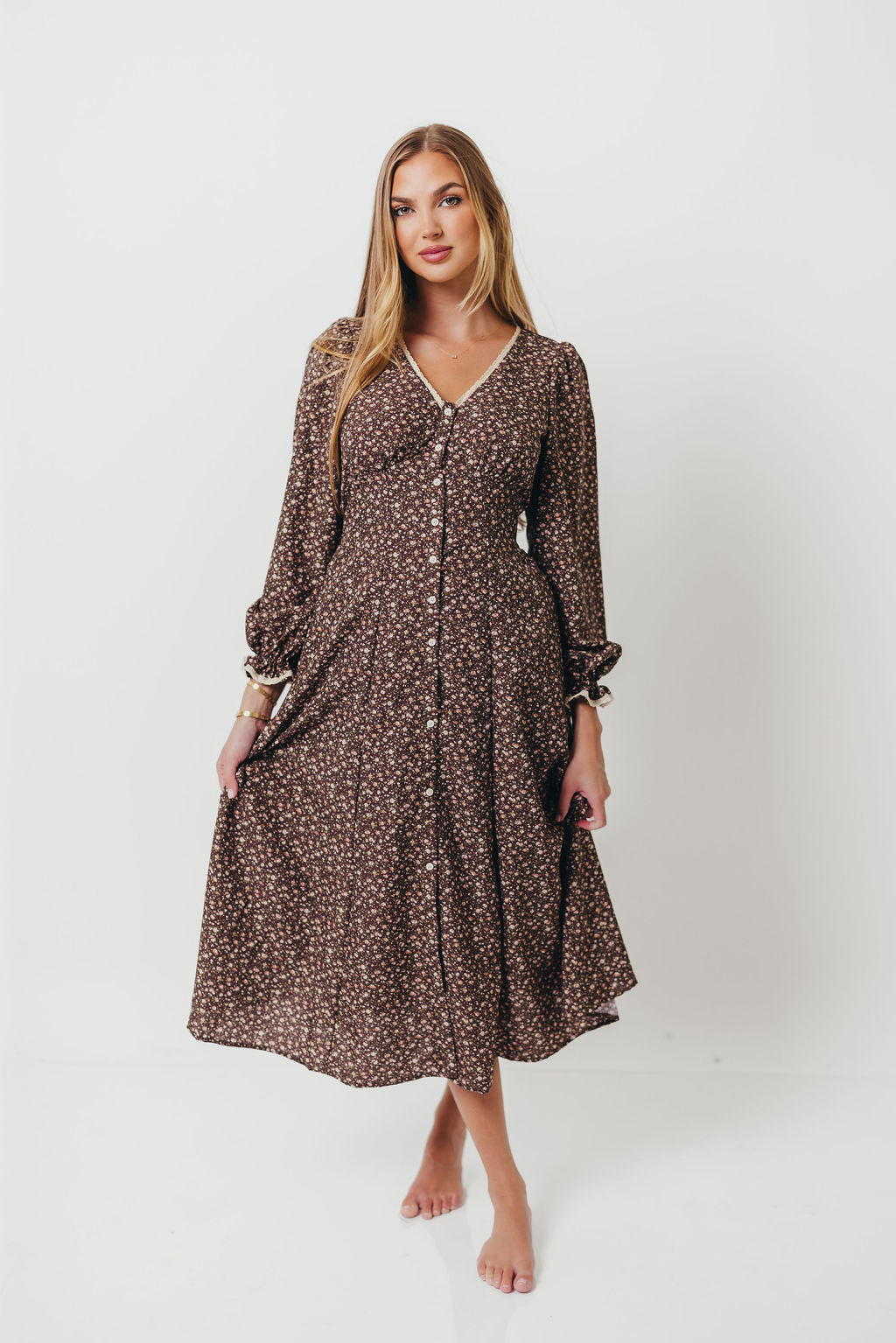 Shailene Tiered Floral Bustier Maxi Dress in Olive