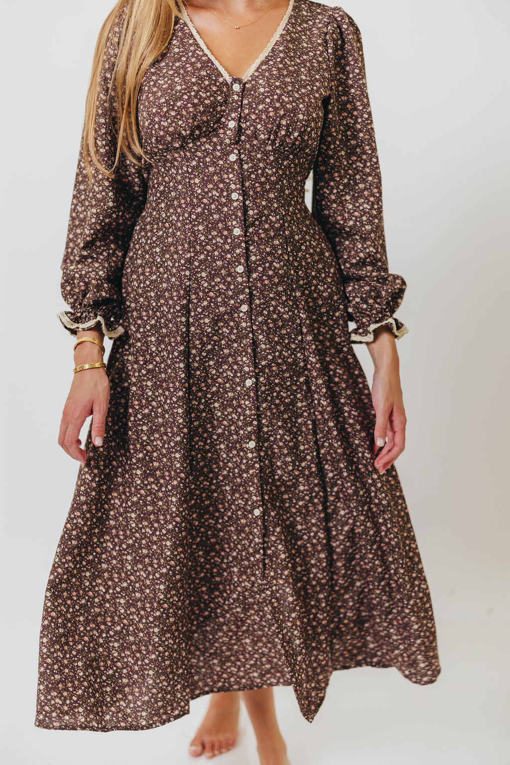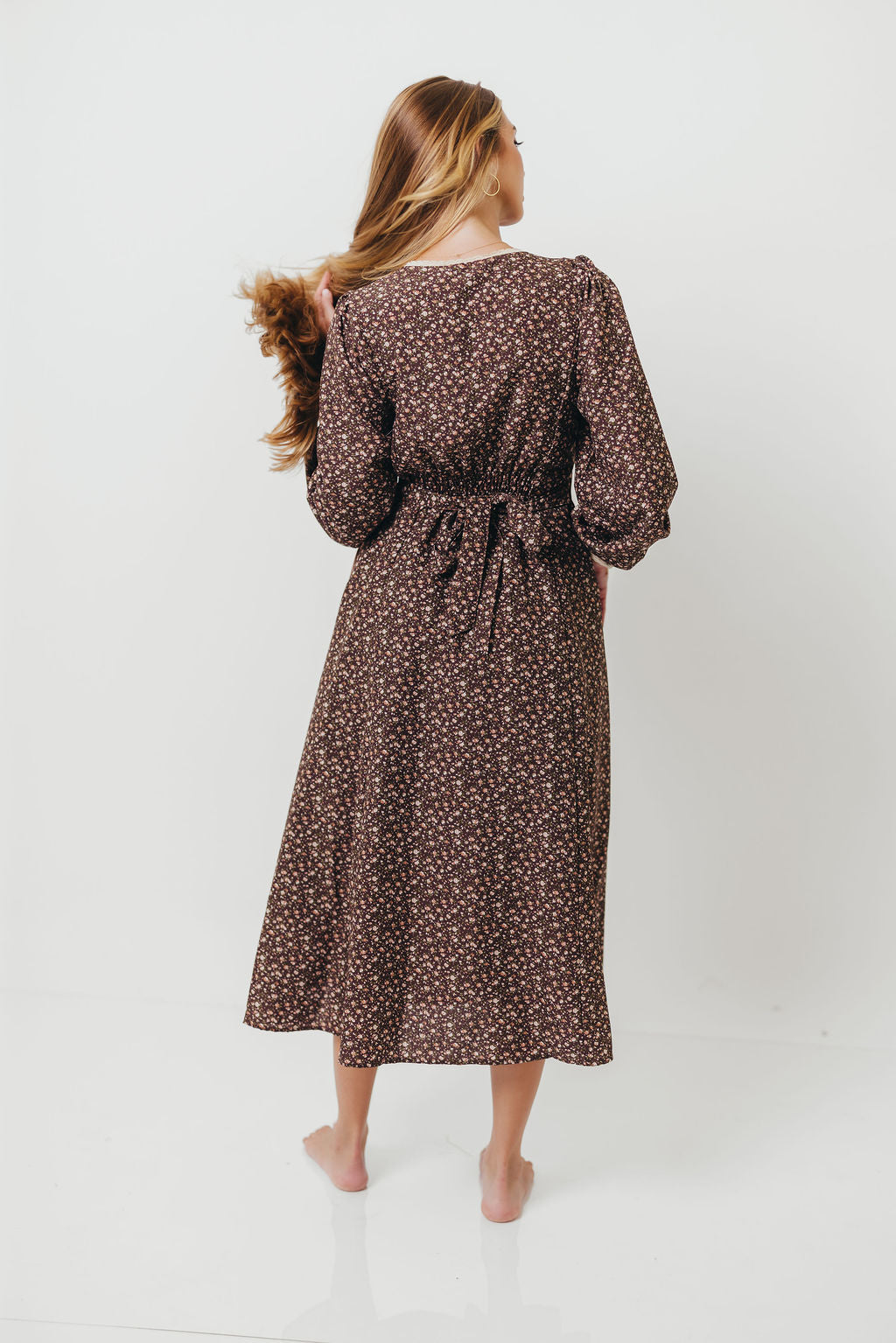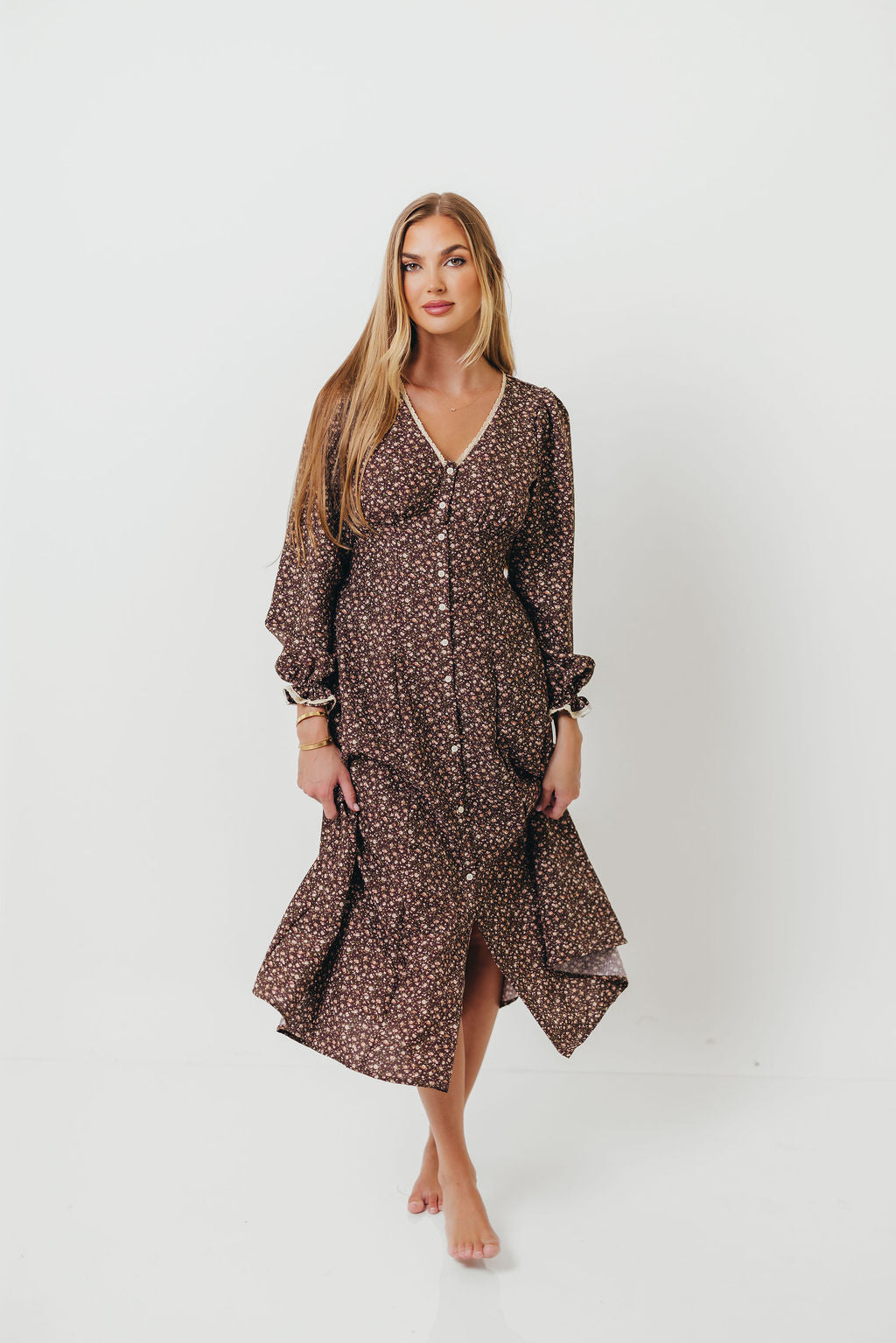 Amelia Ruffle Maxi Dress in Grey/Pink Floral *Final-Sale*