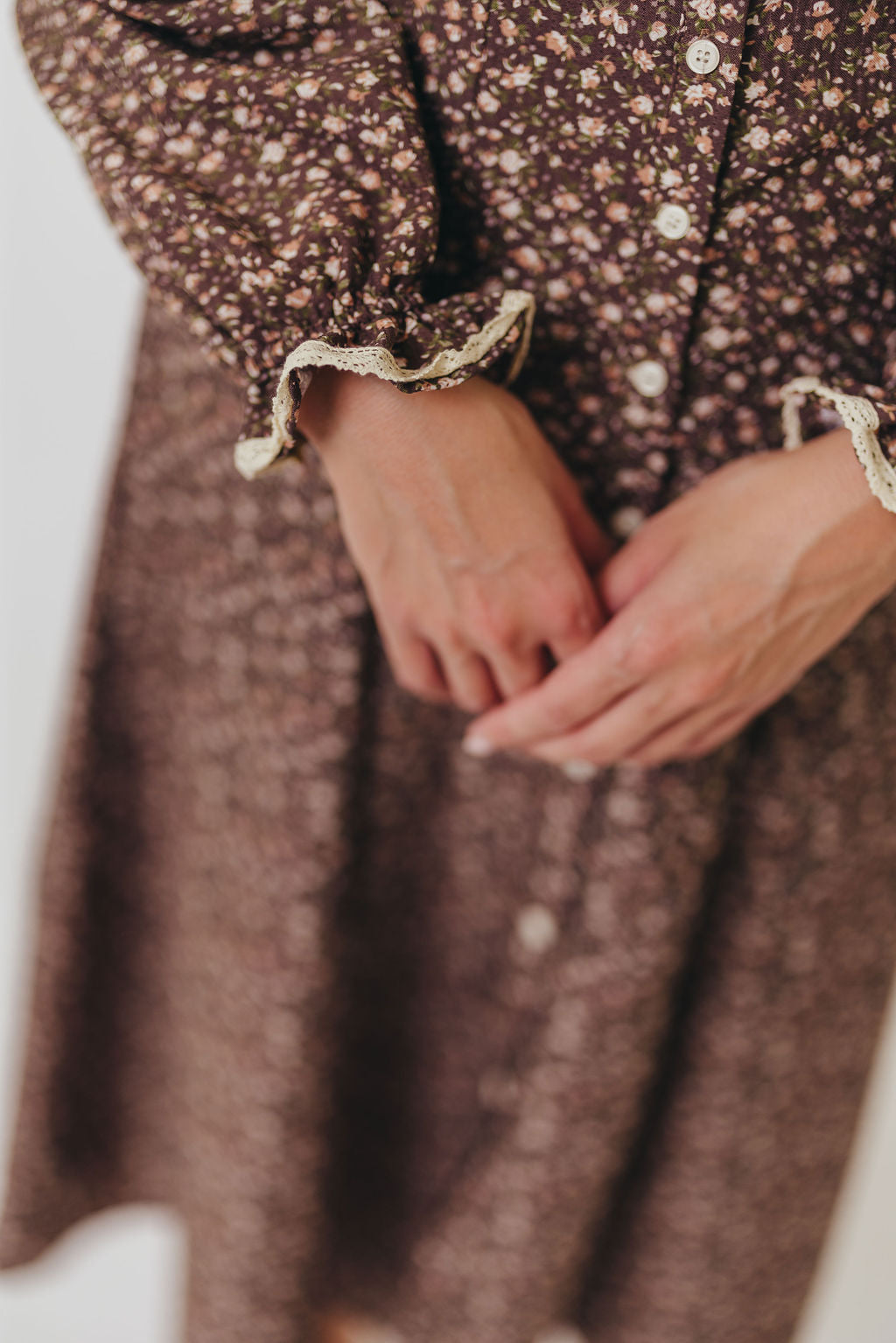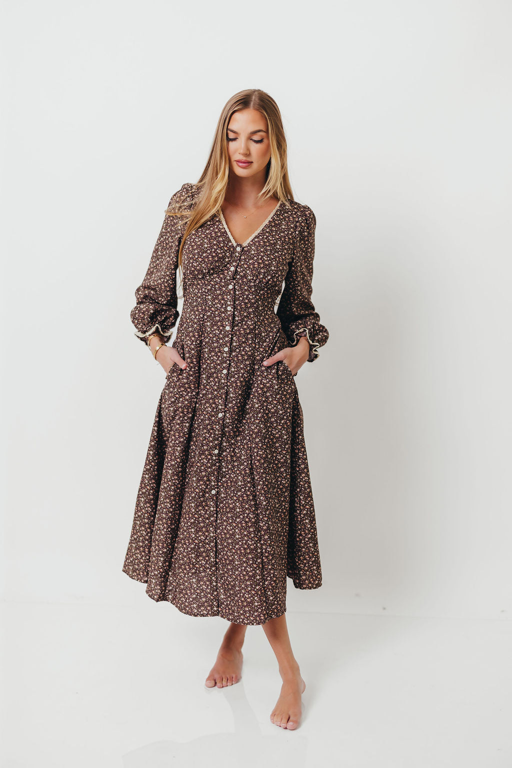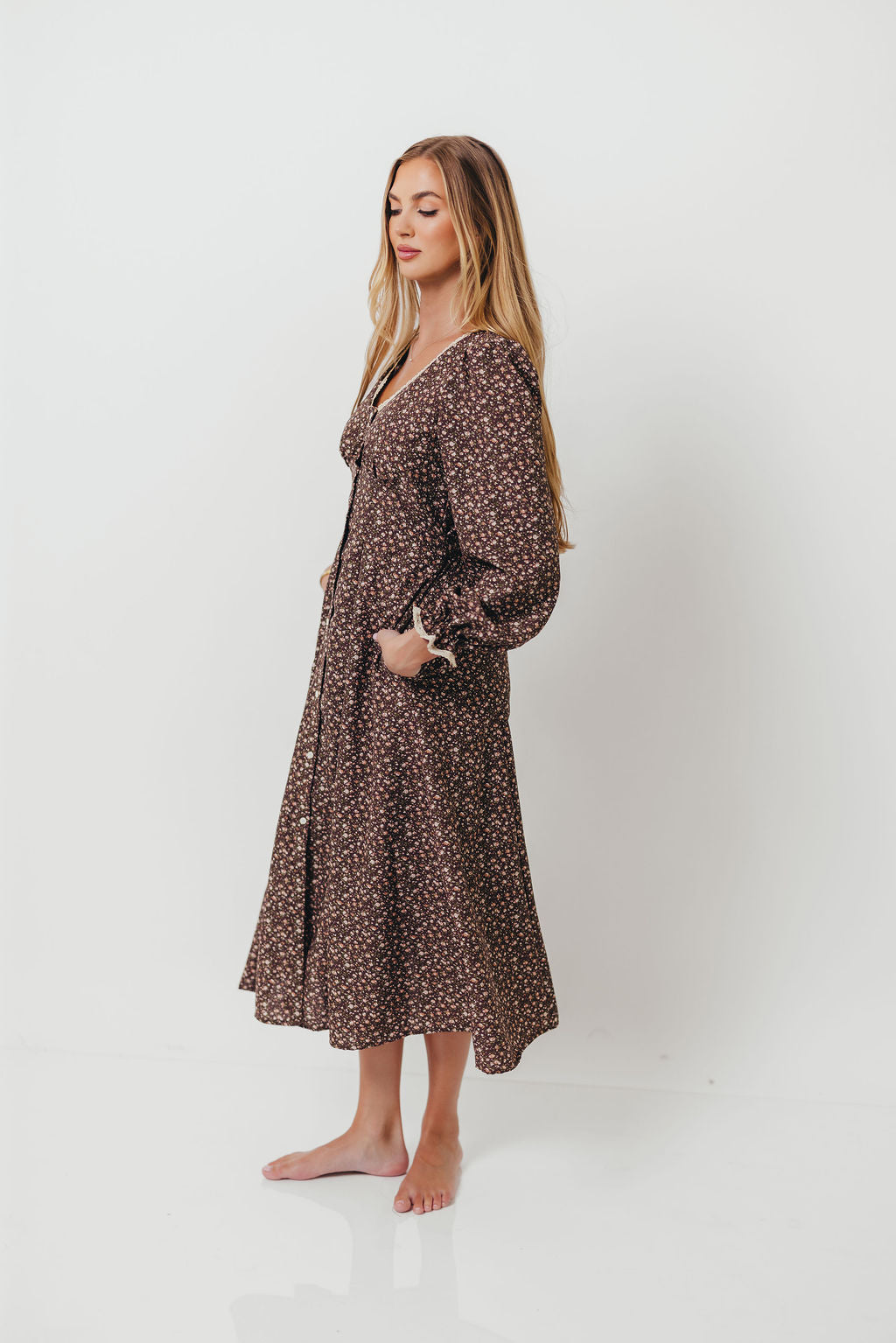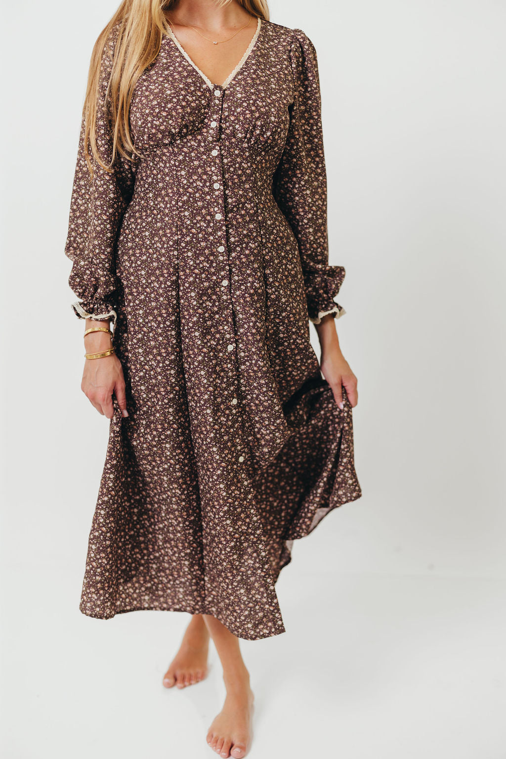 Amelia Ruffle Maxi Dress in Grey/Pink Floral *Final-Sale*