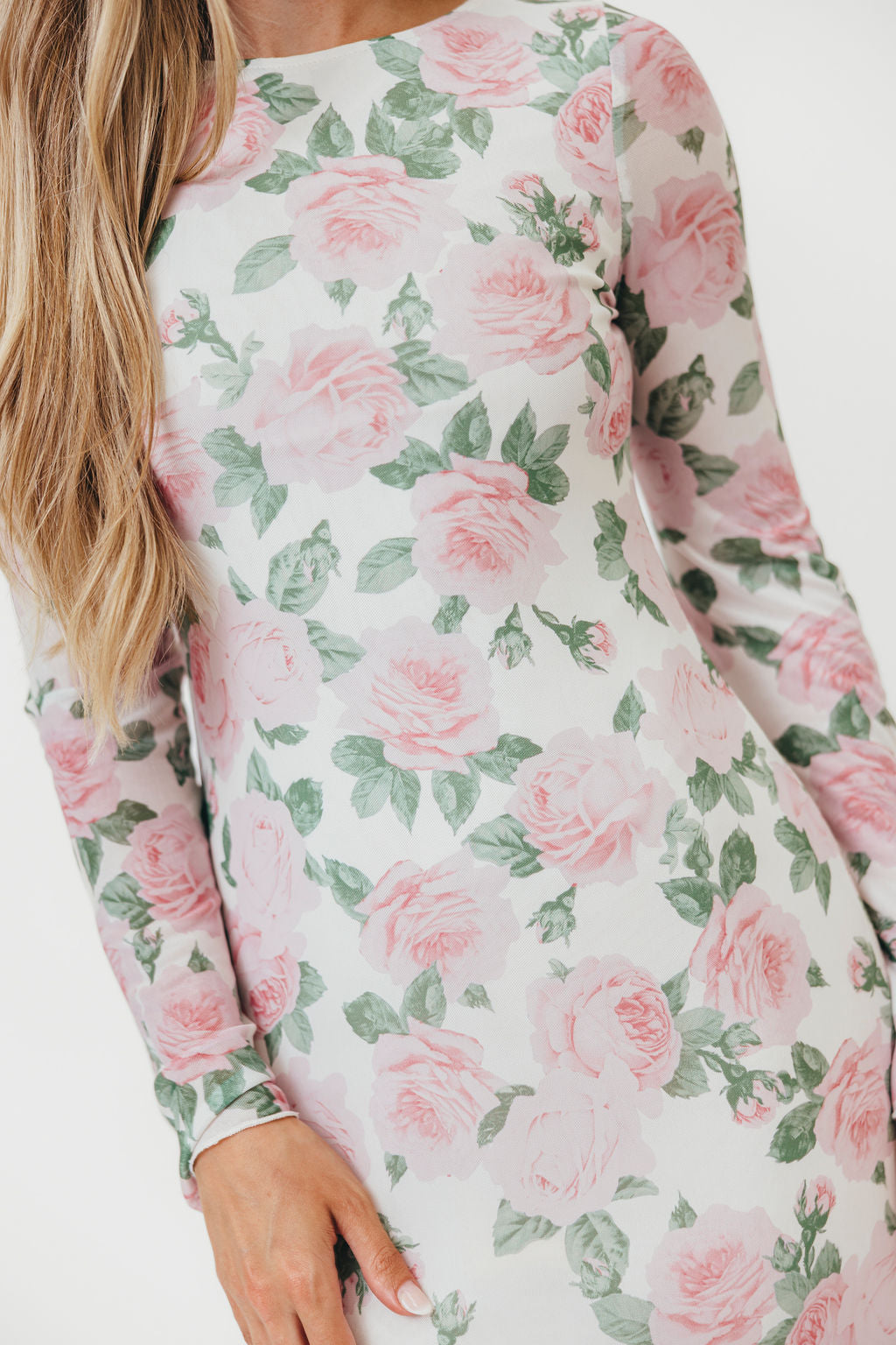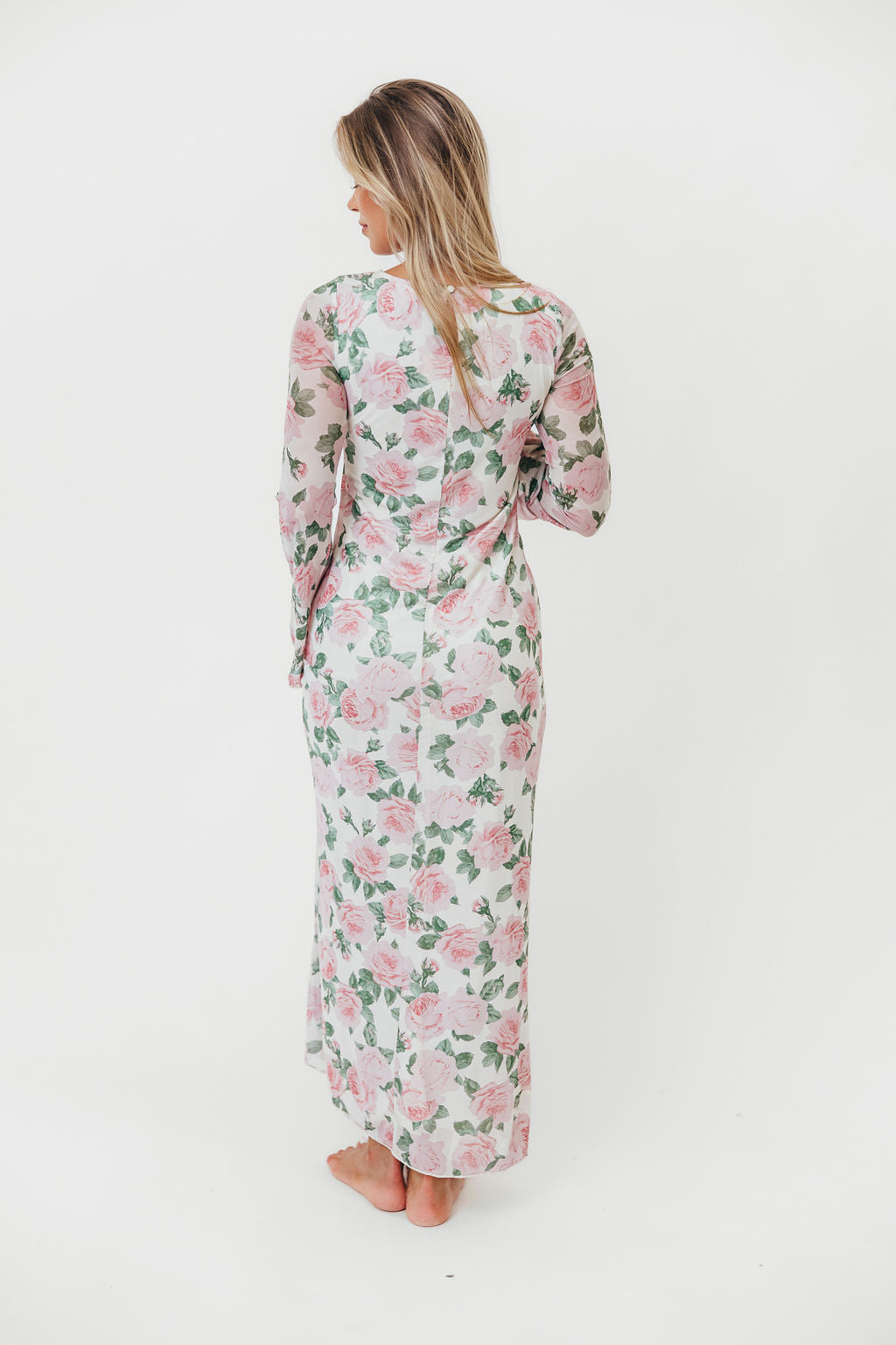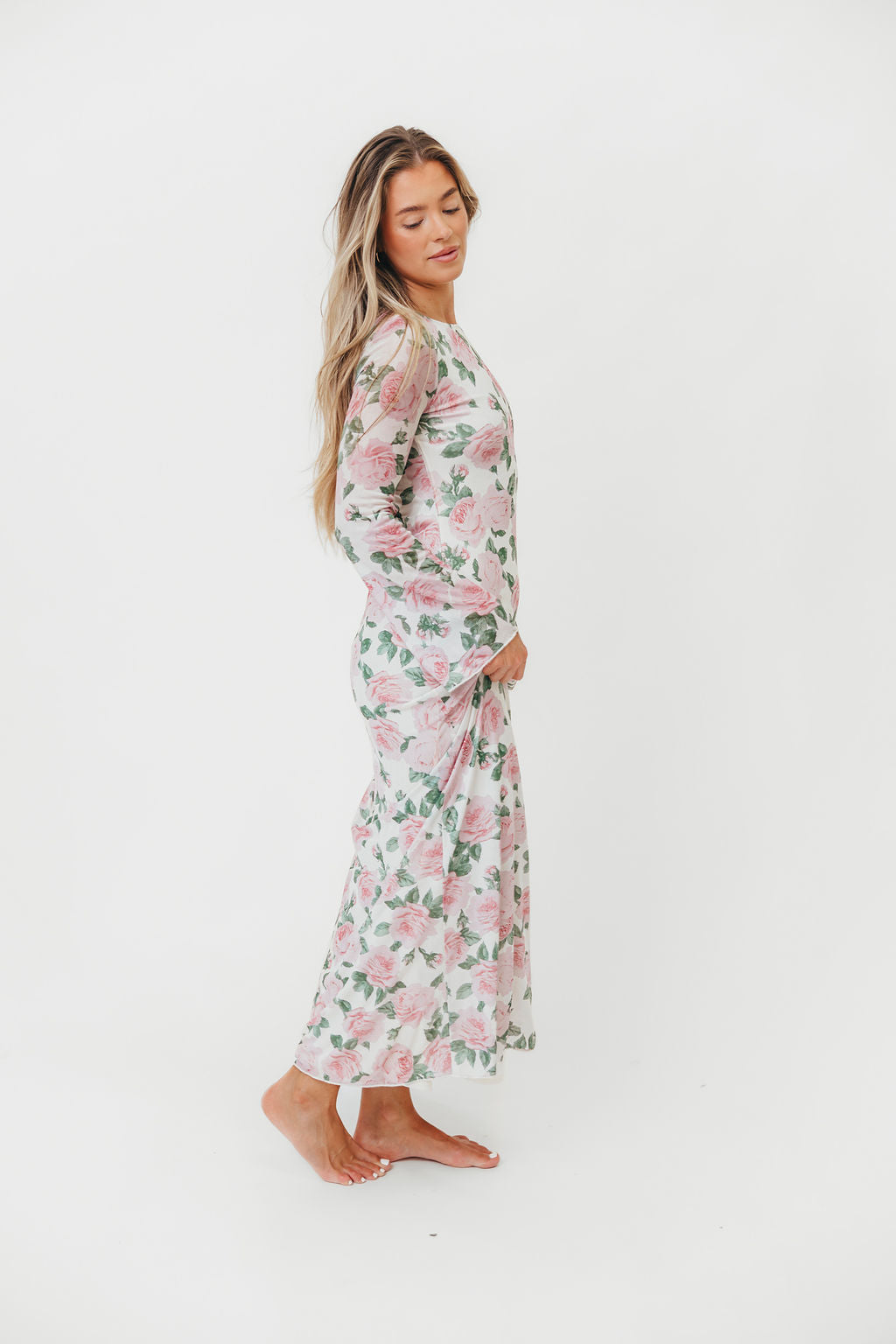 Leeland Floral Print Bell Sleeve Maxi Dress in Light Pink