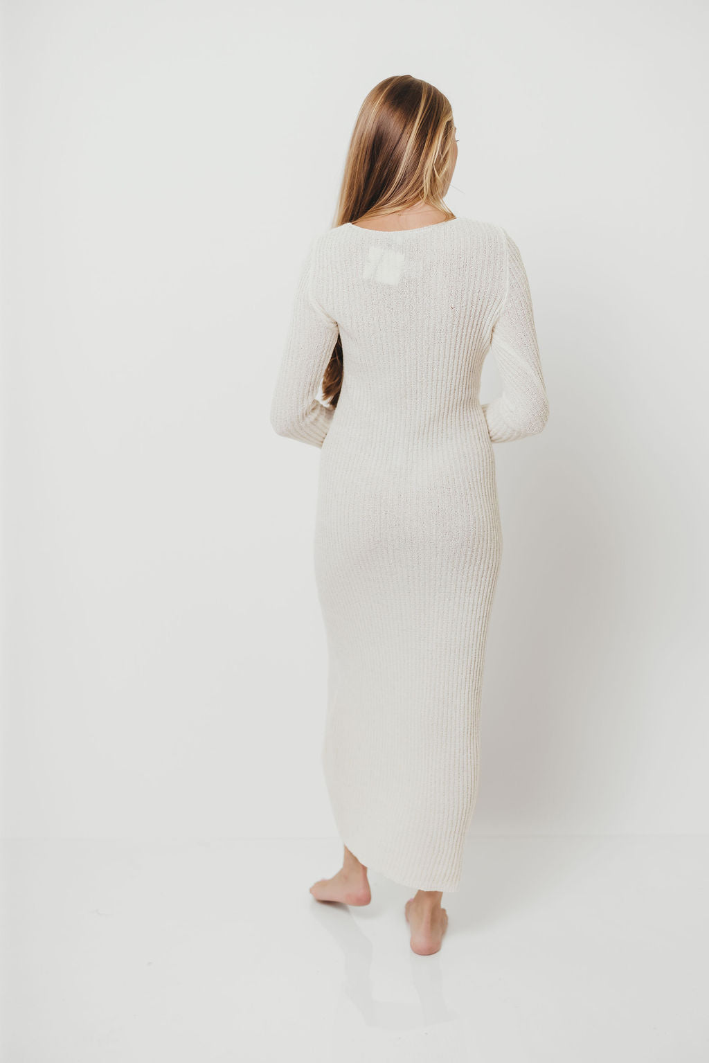 Joline Textured Rib Knit Sweater Maxi Dress in Off-White