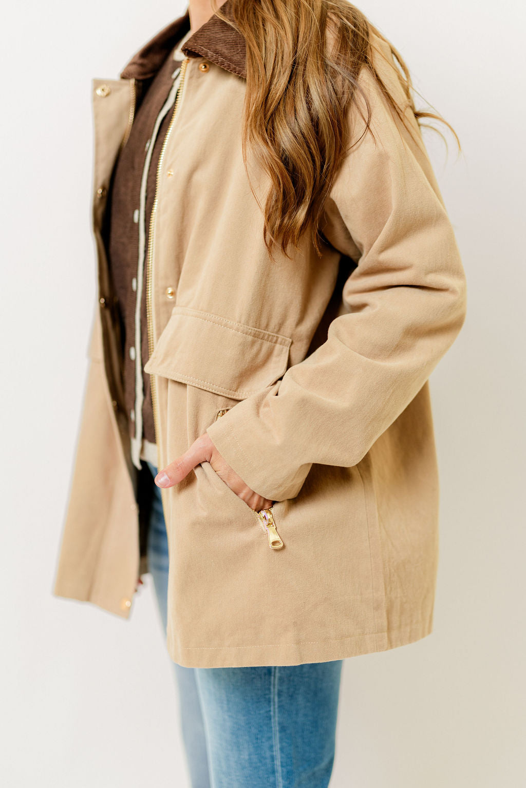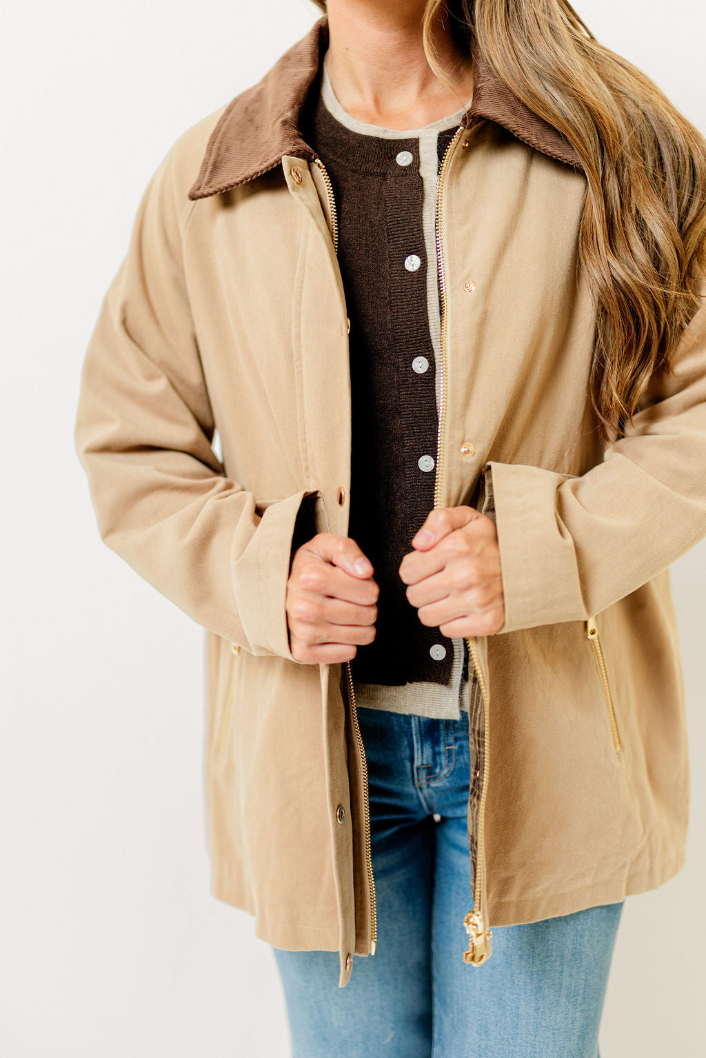 Sicily Button-Down Top in Beige Stripe - Nursing Friendly *Final-Sale*