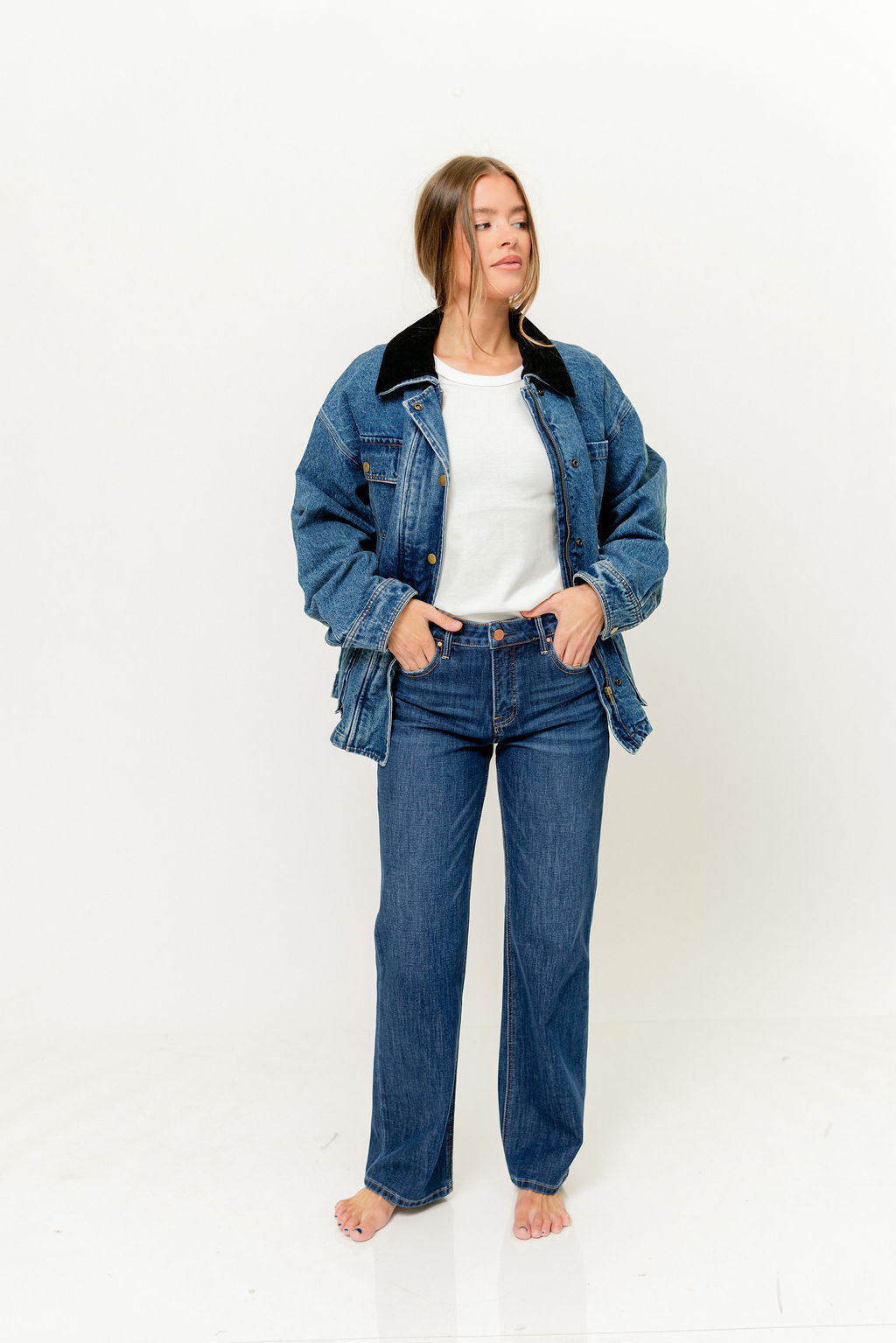 Willow Contrast Panel Long Sleeve Slouchy Top in Butter Olive