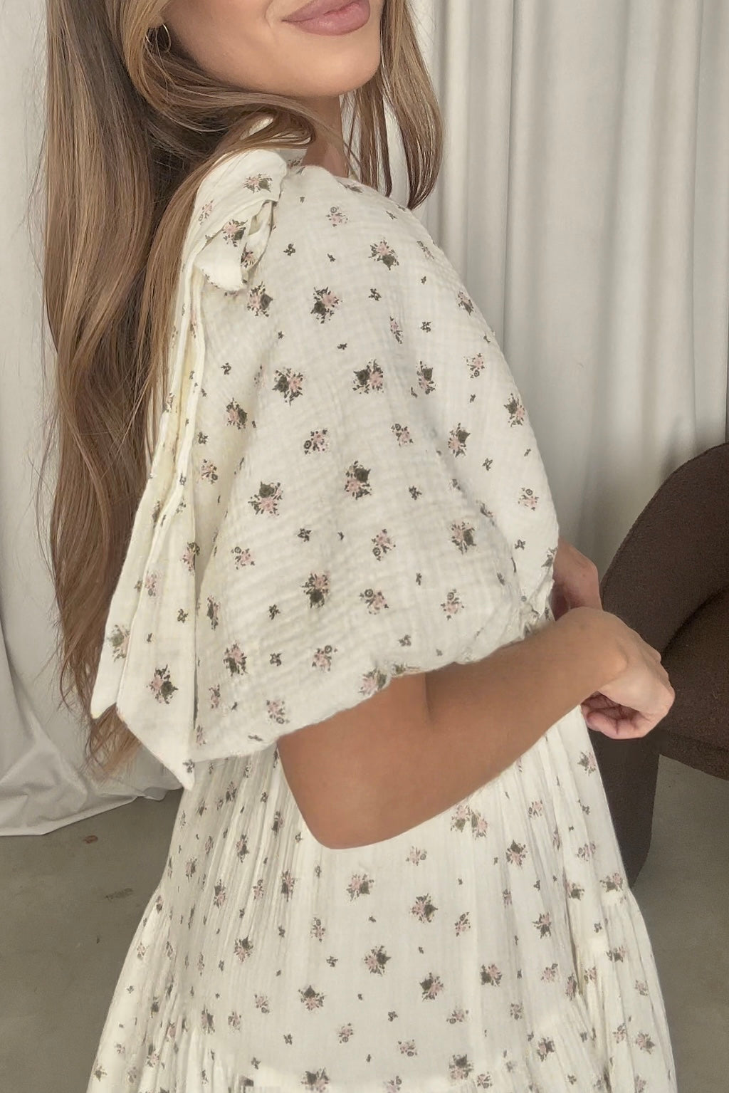 Elena Midi Dress in Off White/Pink Floral *1/23 PRE-ORDER*