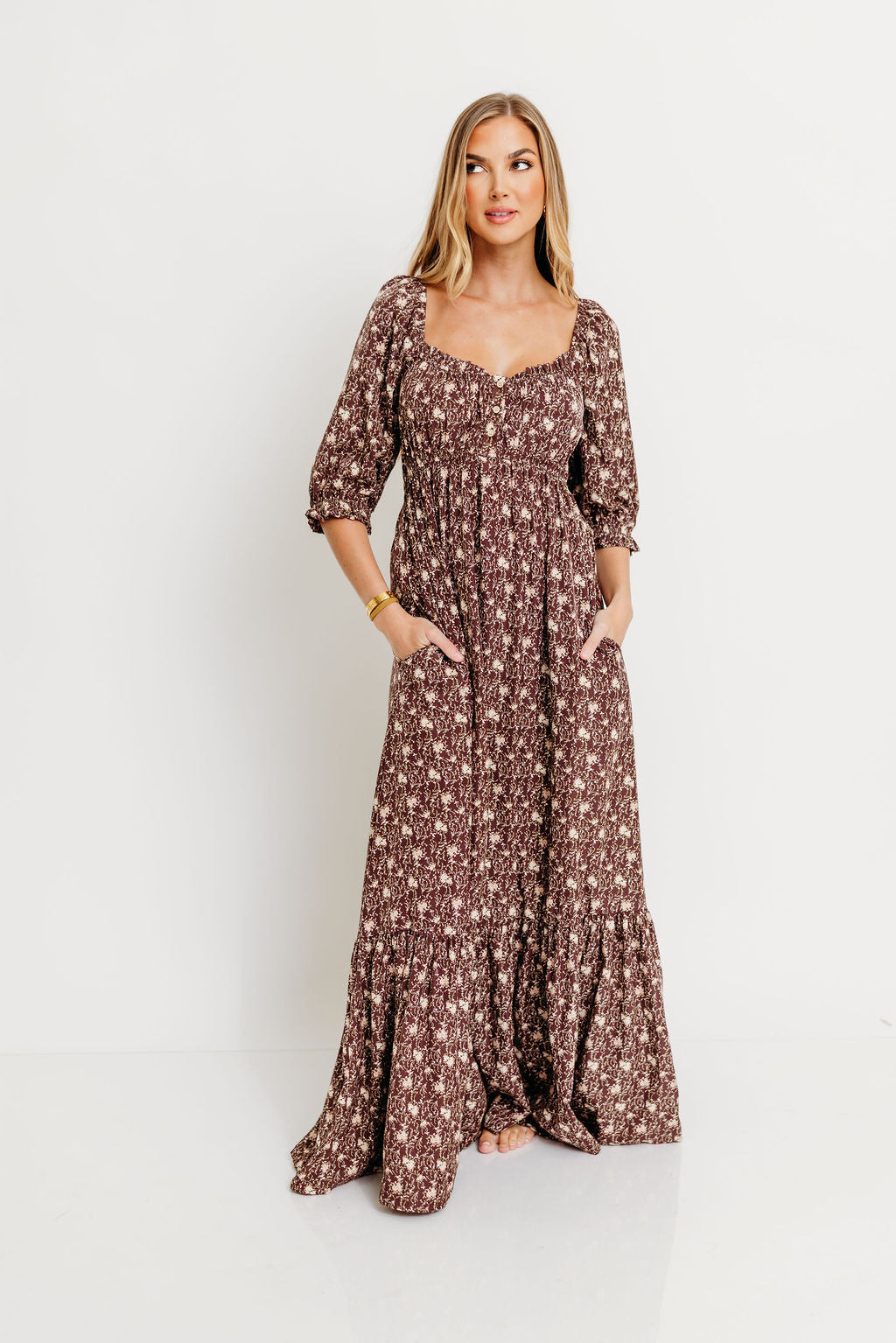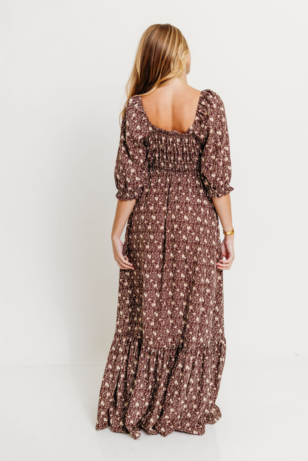 Devon Smocked Maxi Dress in Taupe - Bump Friendly *Final-Sale*