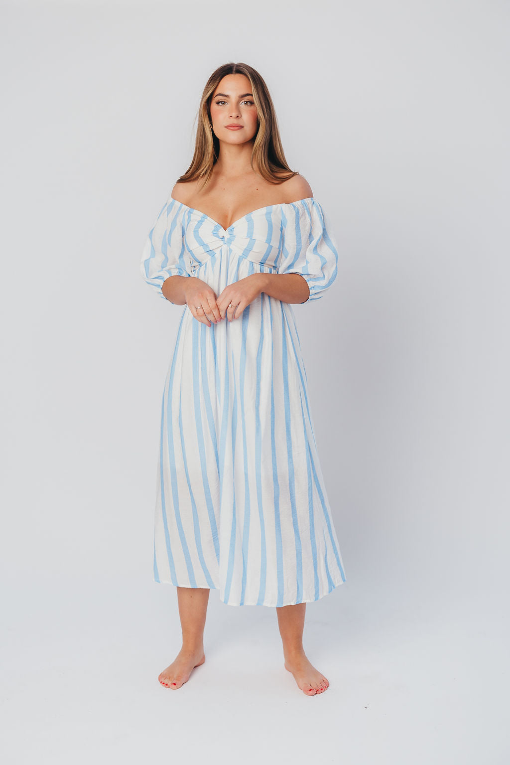 Clara Puffed Sleeve Midi Dress with Twisted Bodice in Cloud