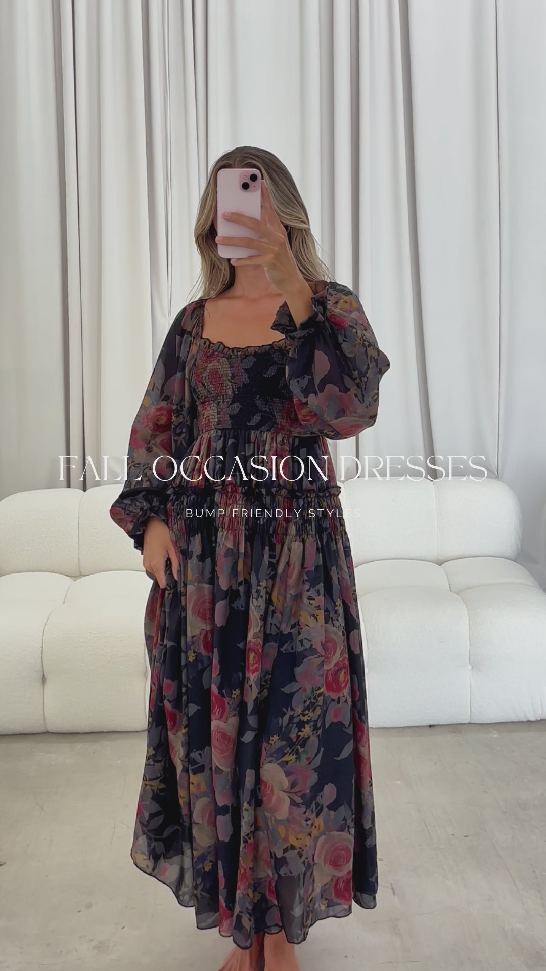 There's no better dress for family photos than the Analise Maxi! This stunning gown offers a beautiful floral print featuring deep, autumnal colors that will look stunning on your annual holiday cards! Plus you'll be so comfortable, thanks to this gown's wrinkle-textured fabric and relaxed fit. Get your size now before the Analise is all gone!