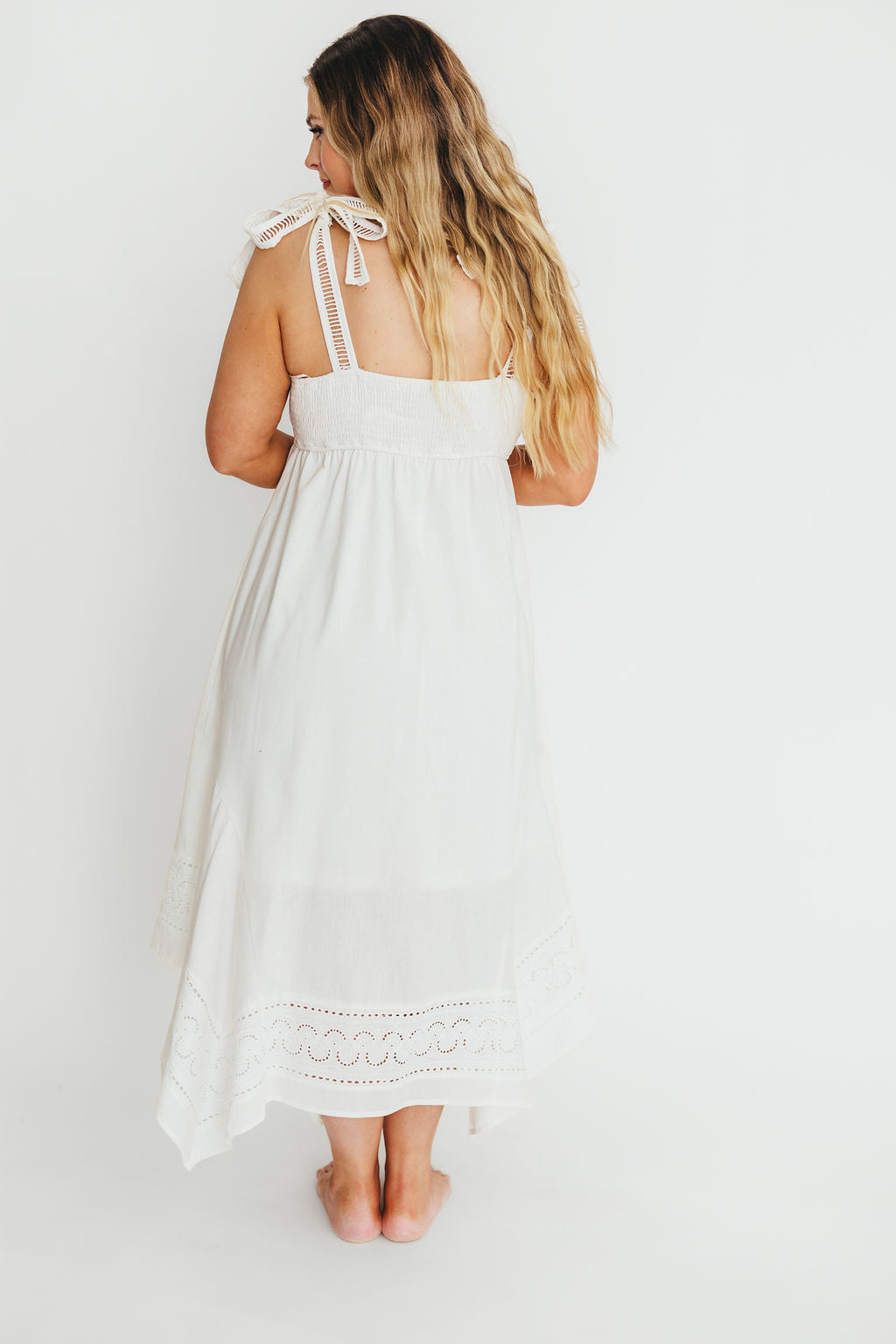 Palmer Asymmetrical Hem Midi Dress in White *Final-Sale*
