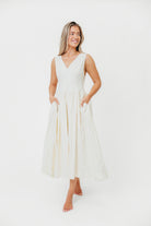 Cece 100% Cotton Bow Detail Woven Maxi Dress in Off-White
