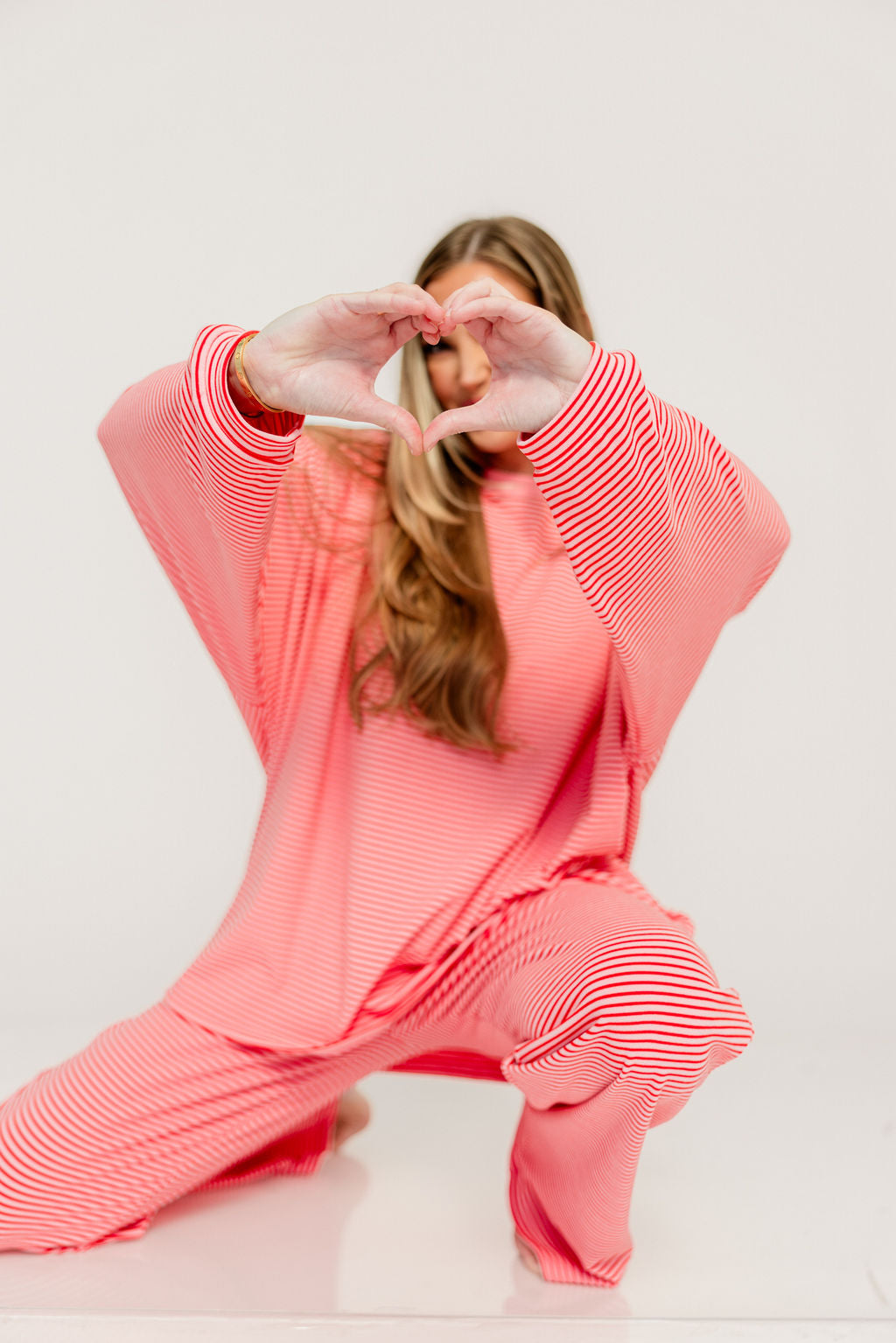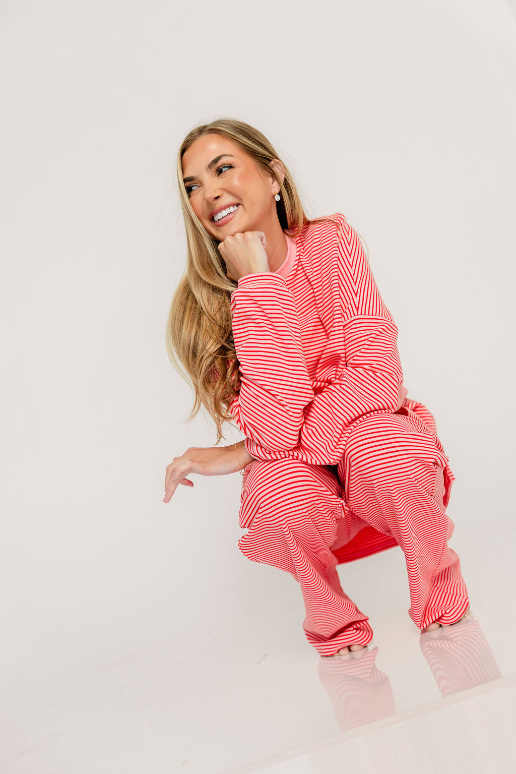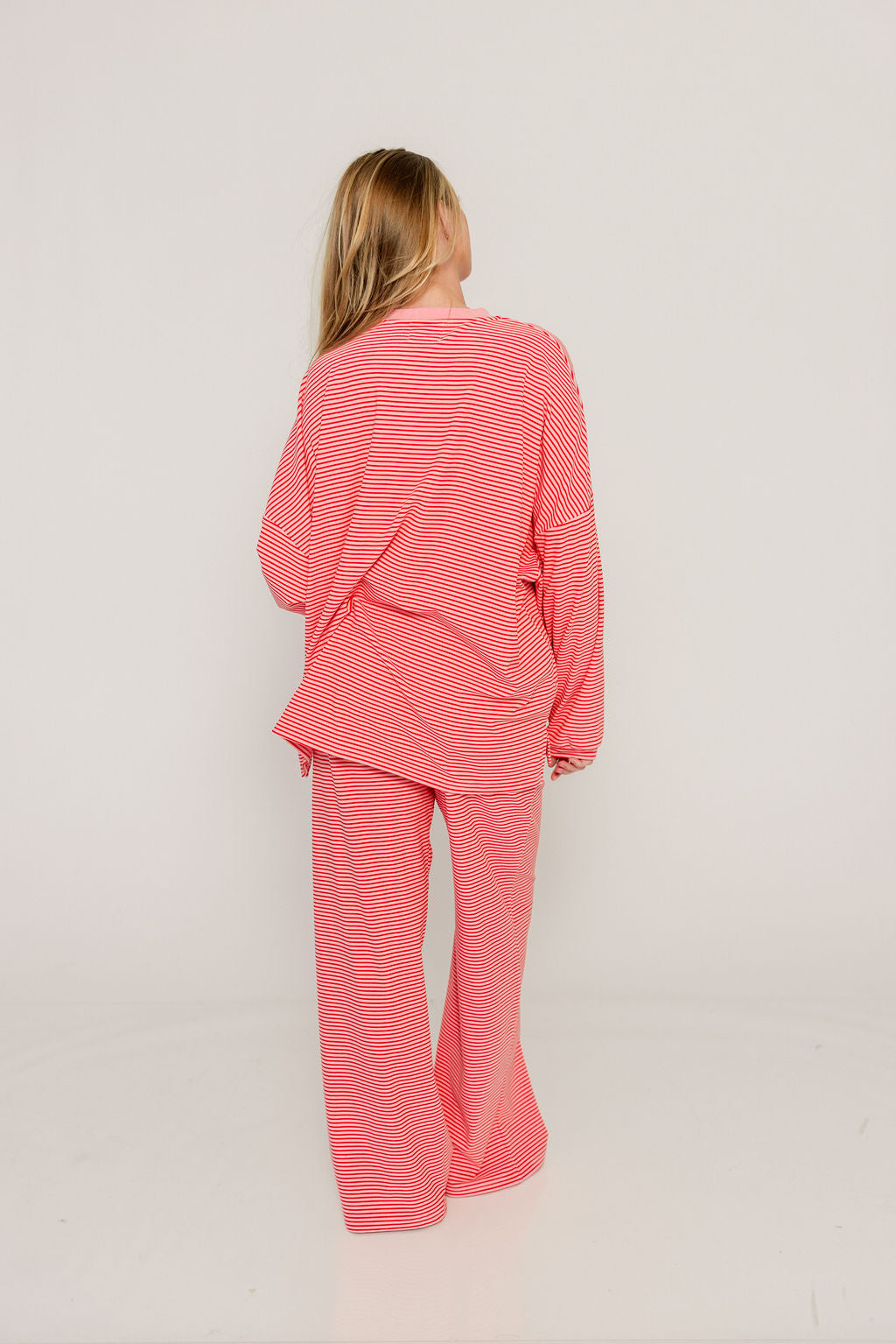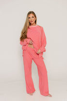 Campbell Striped Fleece Lounge Pants in Pink/Red