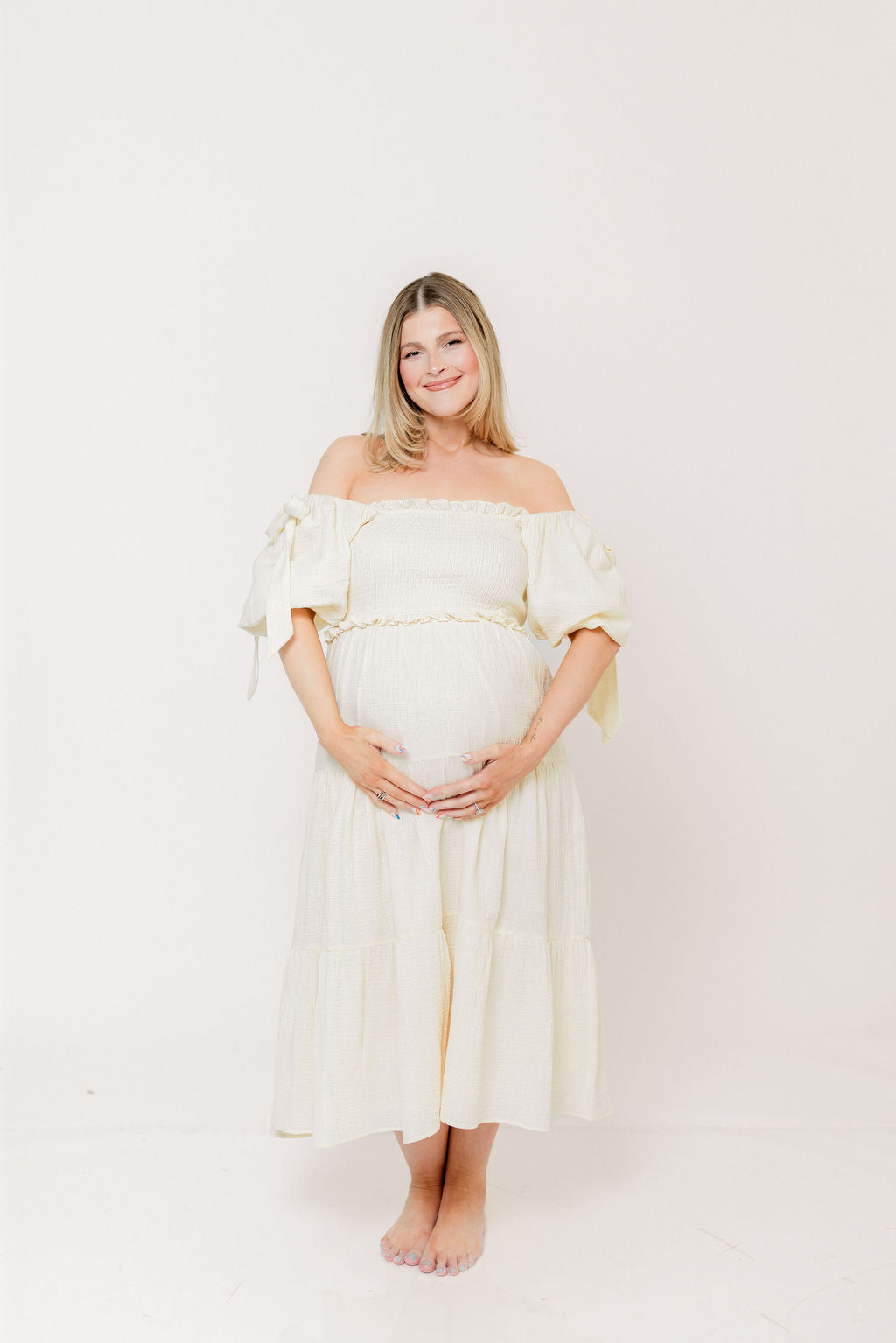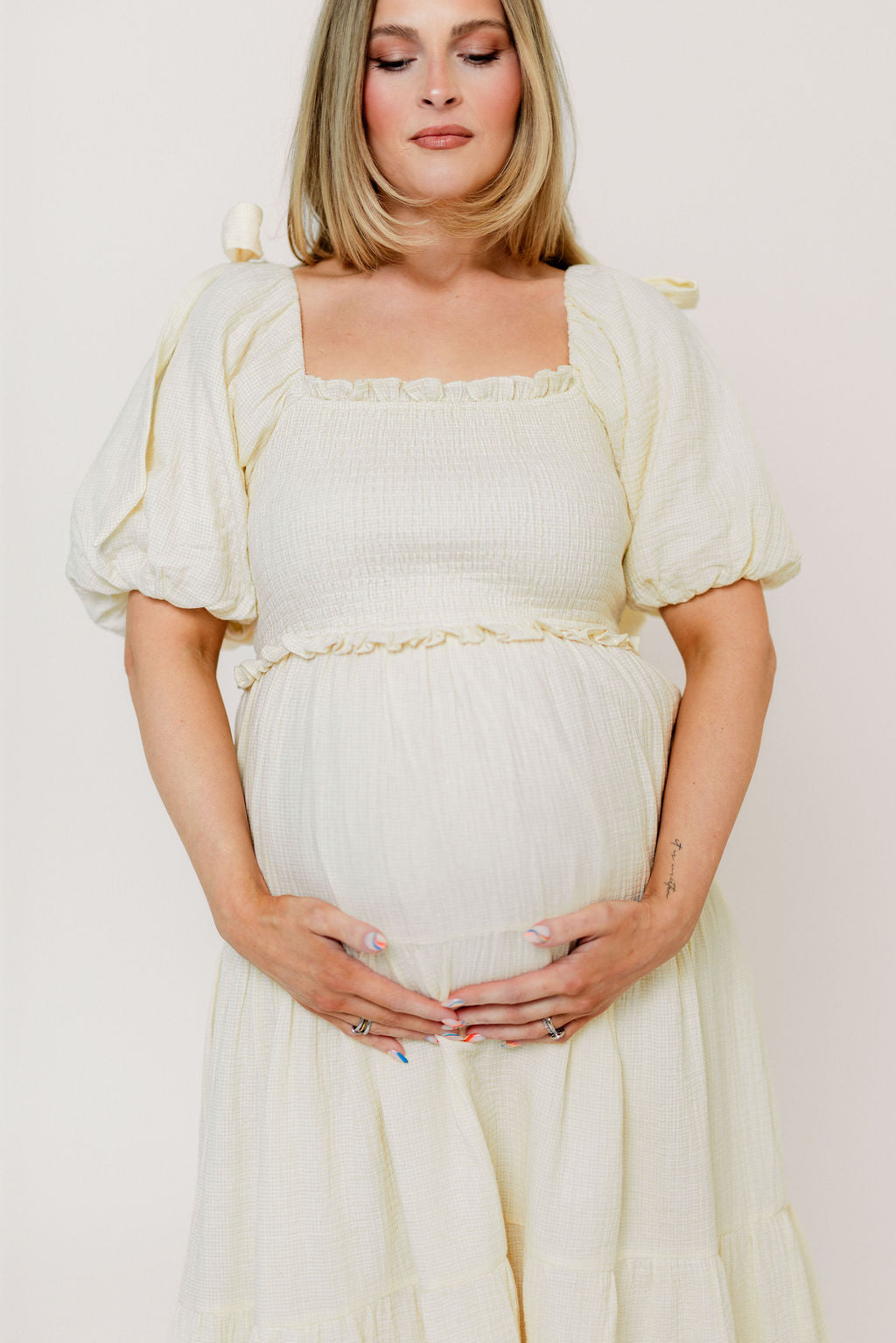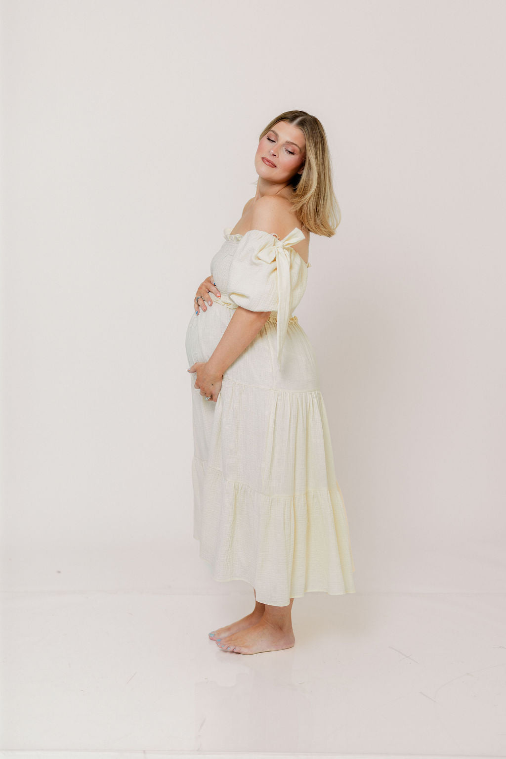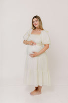 Elena 100% Cotton Midi Dress in Cream - Bump Friendly