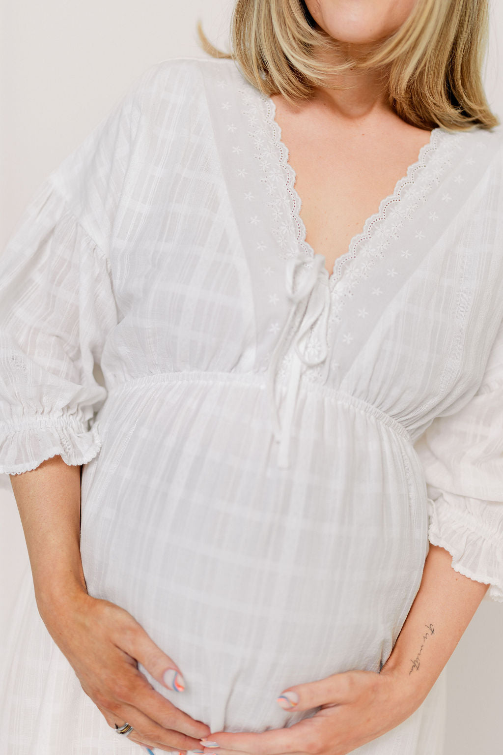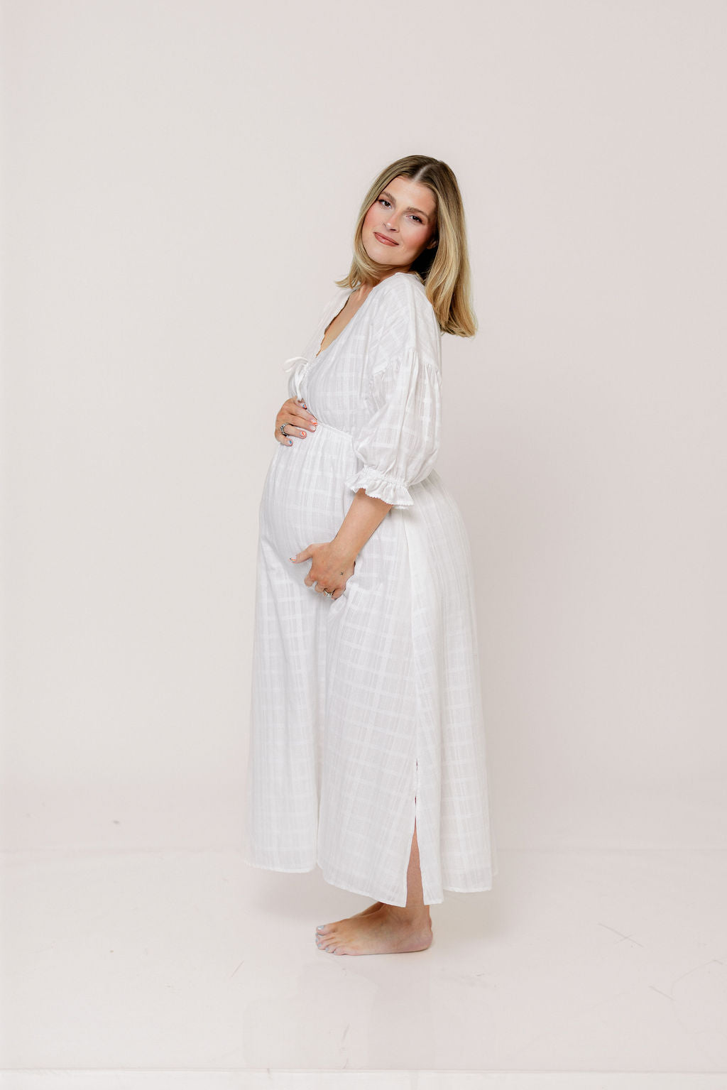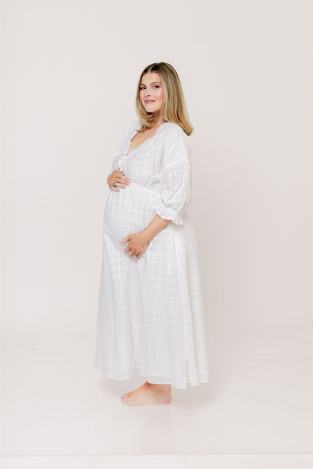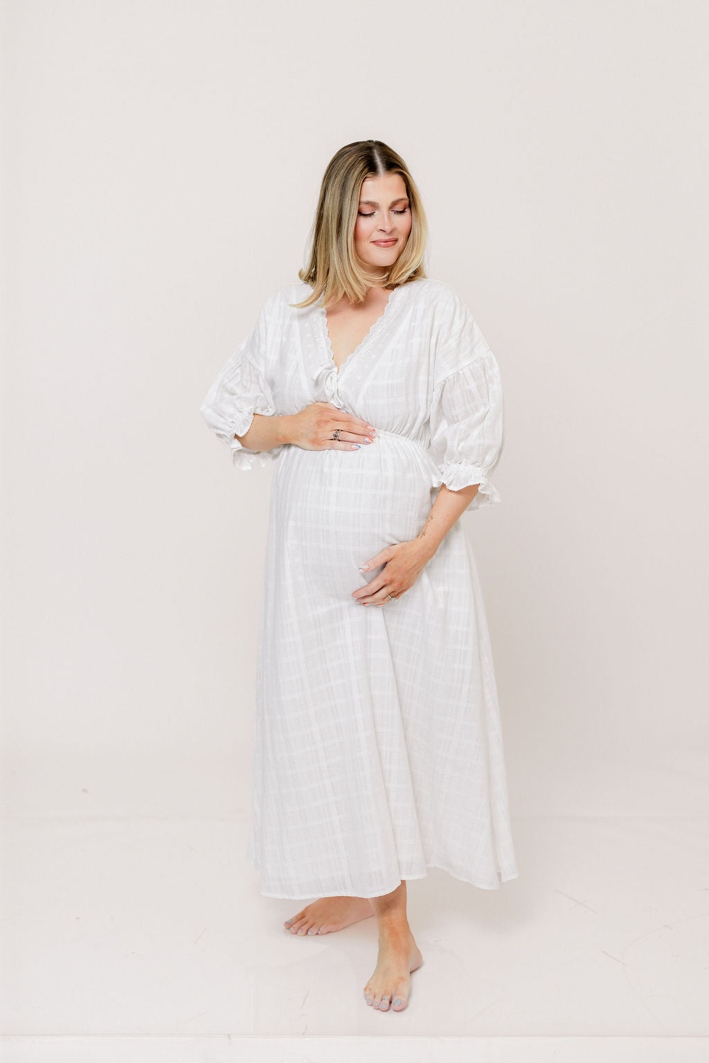 Hunter 100% Cotton Midi Dress with Lace Trim in Ivory - Bump Friendly