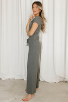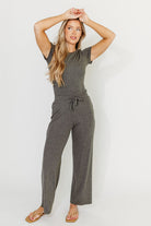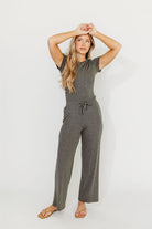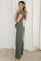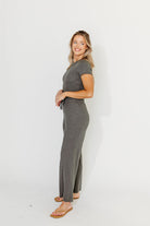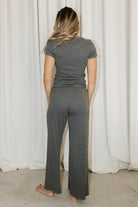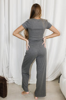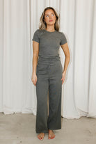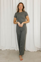 The Muse Knit Ribbed Short Sleeve Top & Pants Set in Charcoal *Final-Sale*
