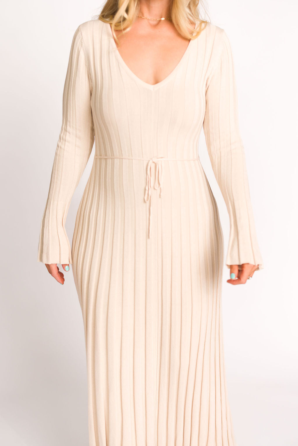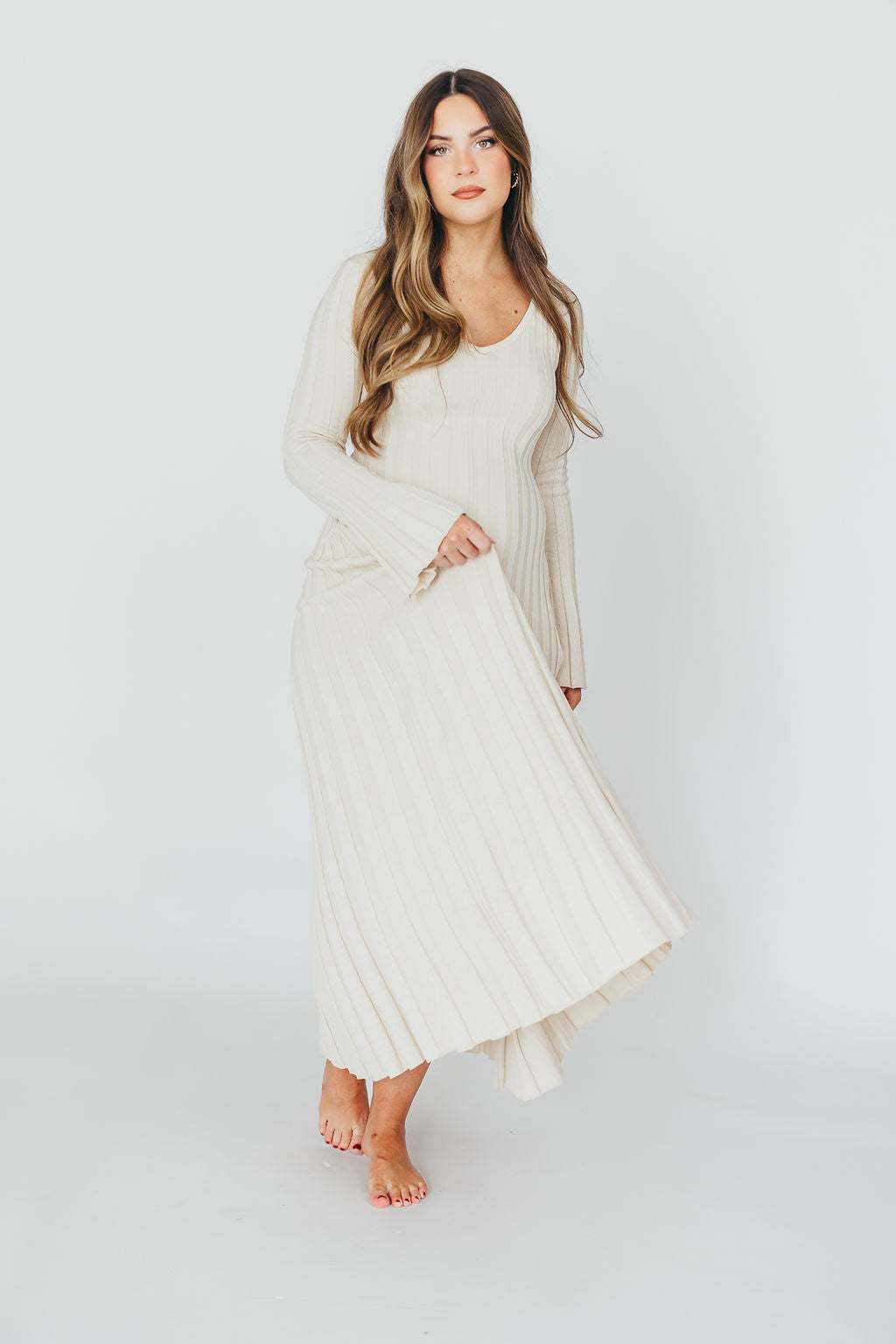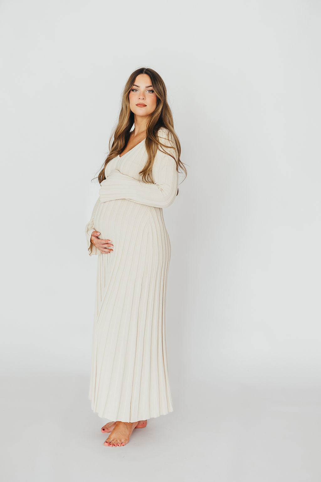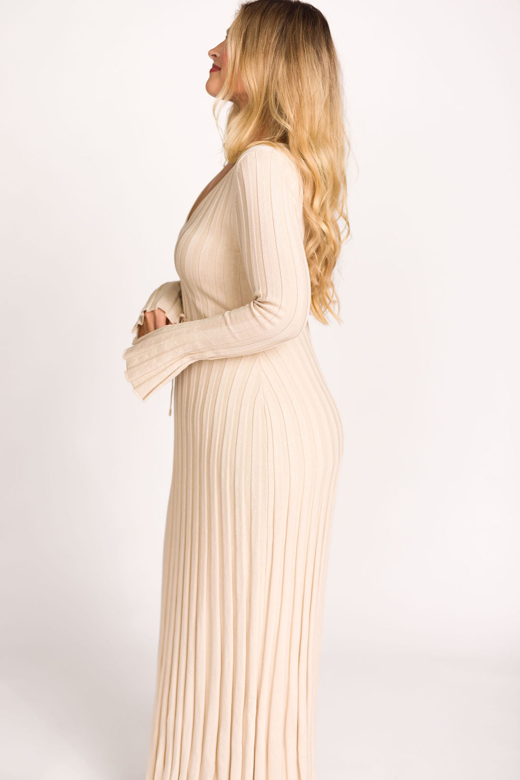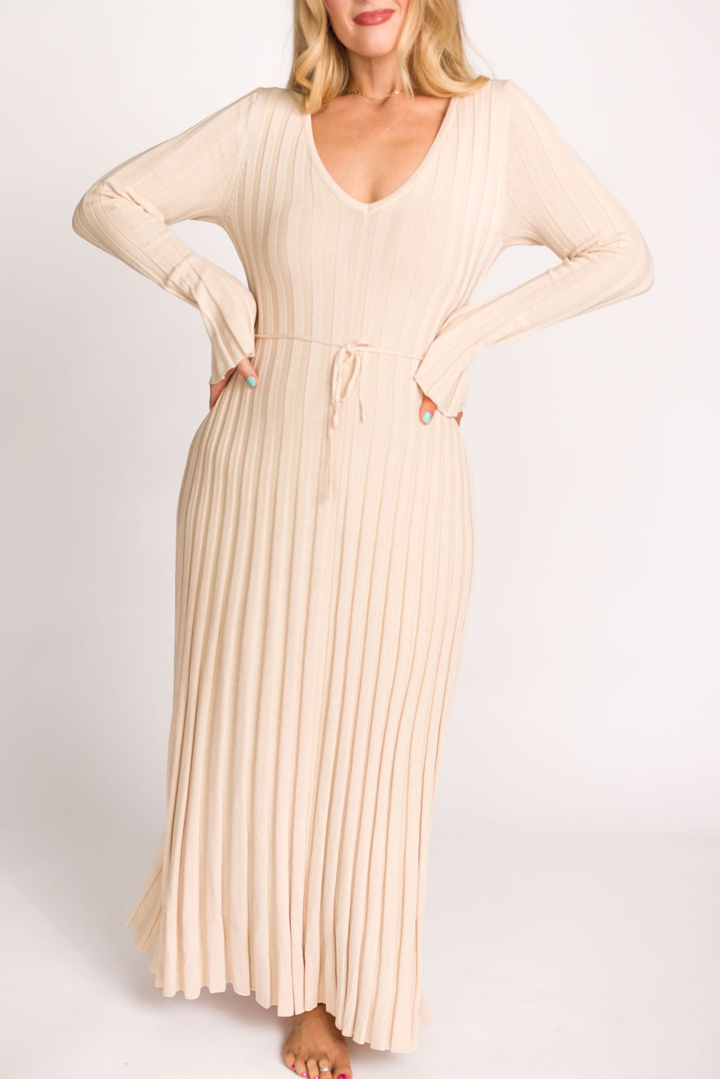 Hadley Long Sleeve V-Neck Knit Maxi Dress in Cream Taupe
