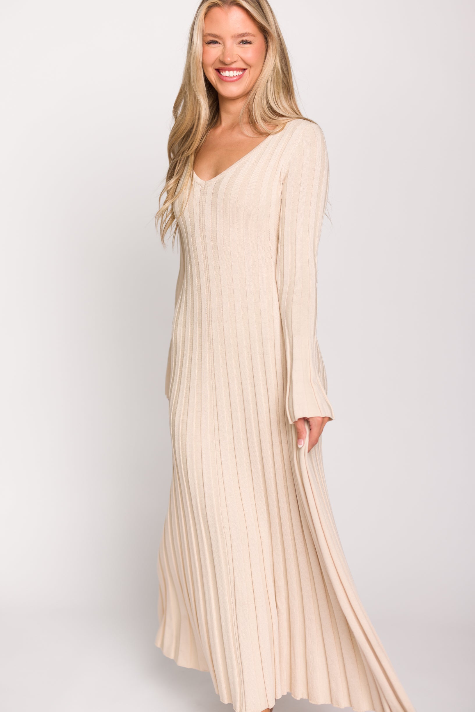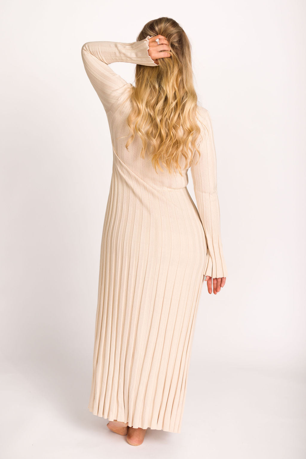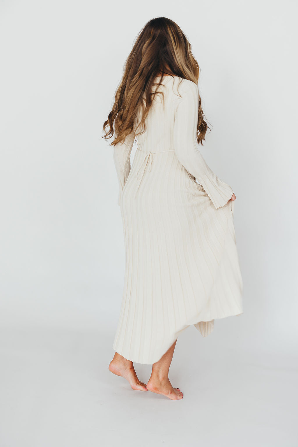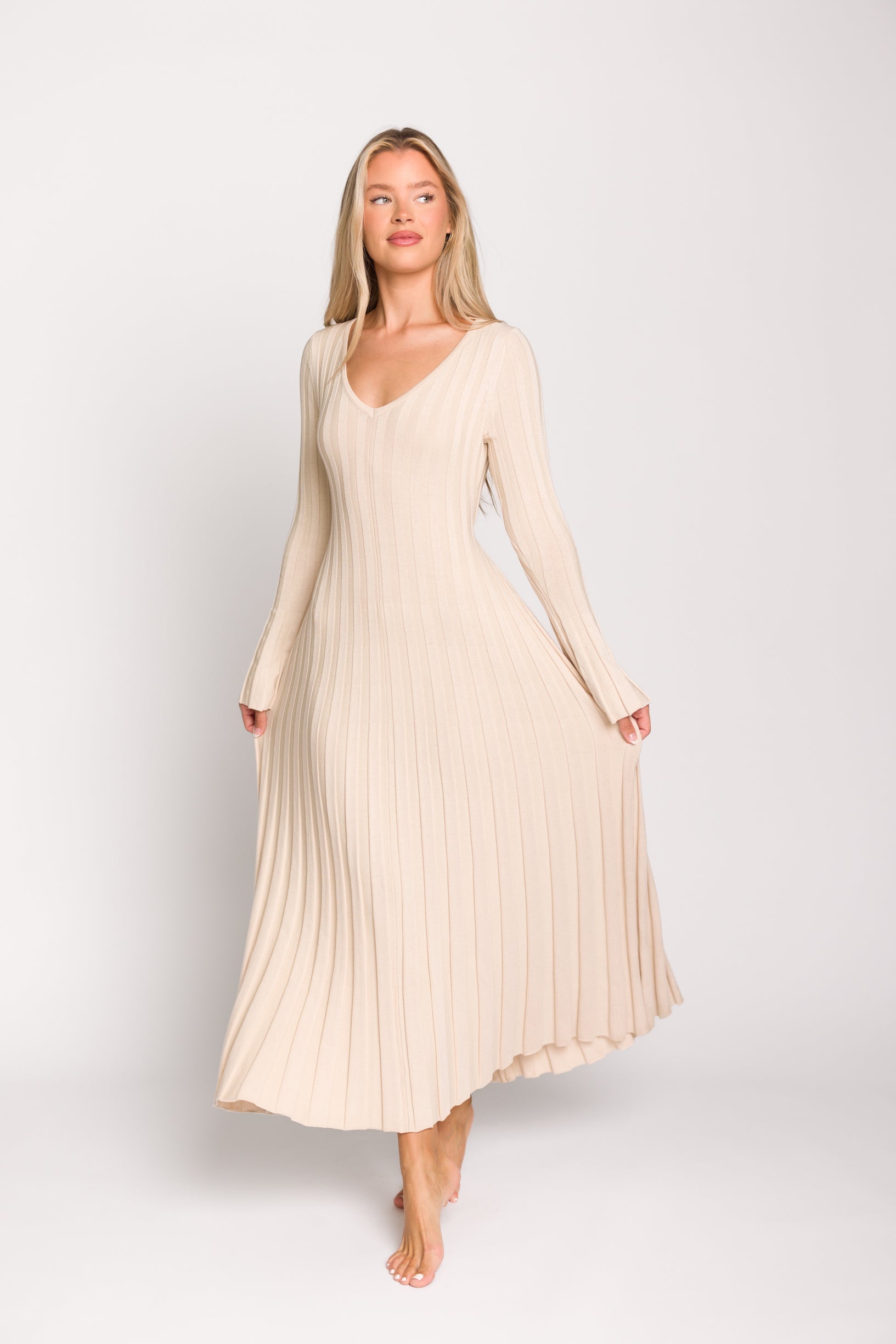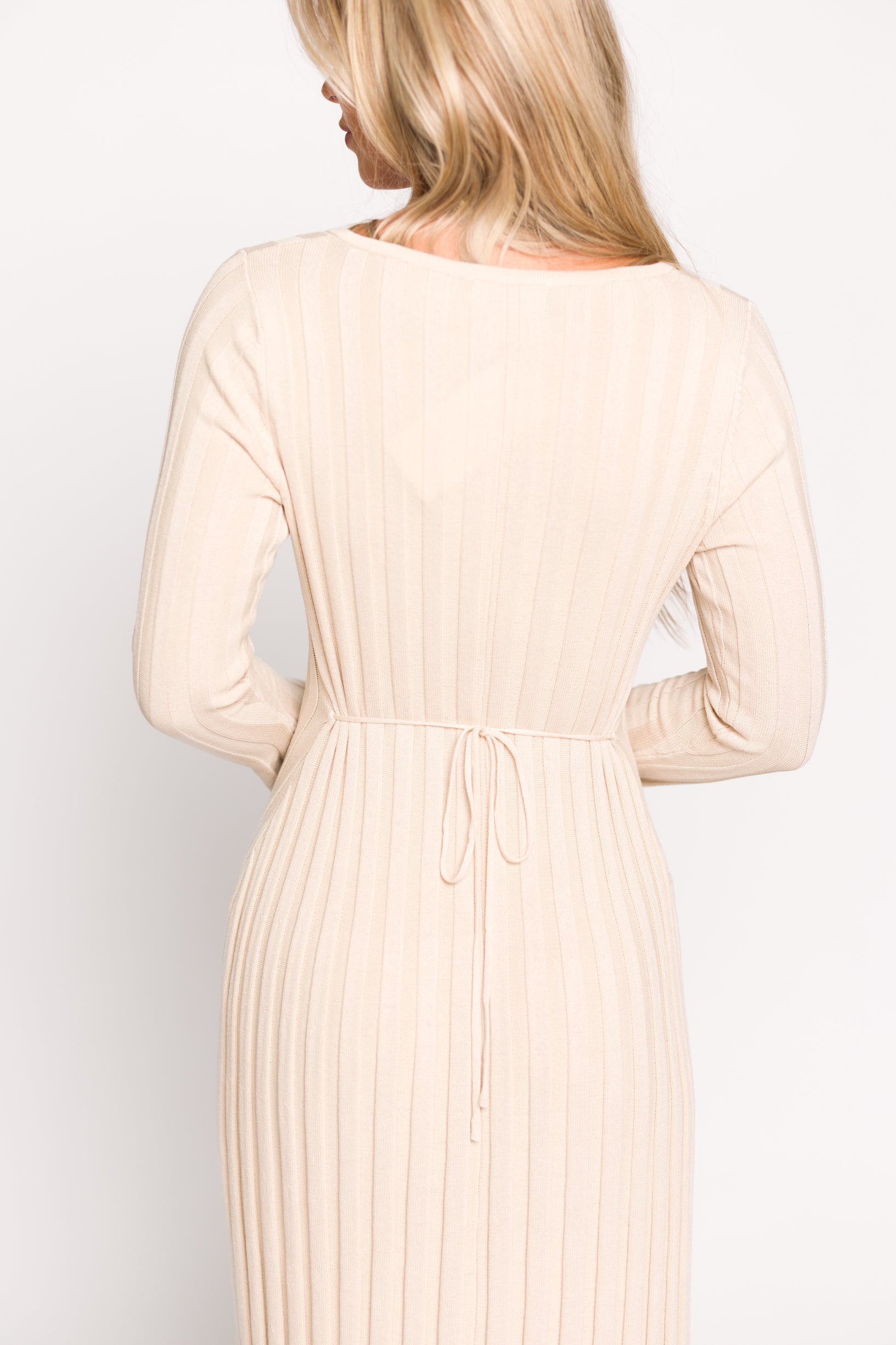 Hadley Long Sleeve V-Neck Knit Maxi Dress in Cream Taupe