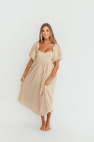 Hamilton Midi Dress in Taupe - Bump Friendly (S-2XL) *Final-Sale*