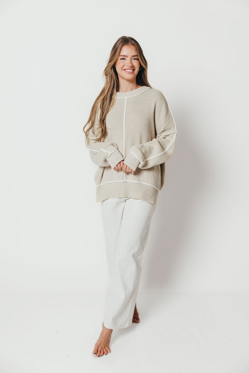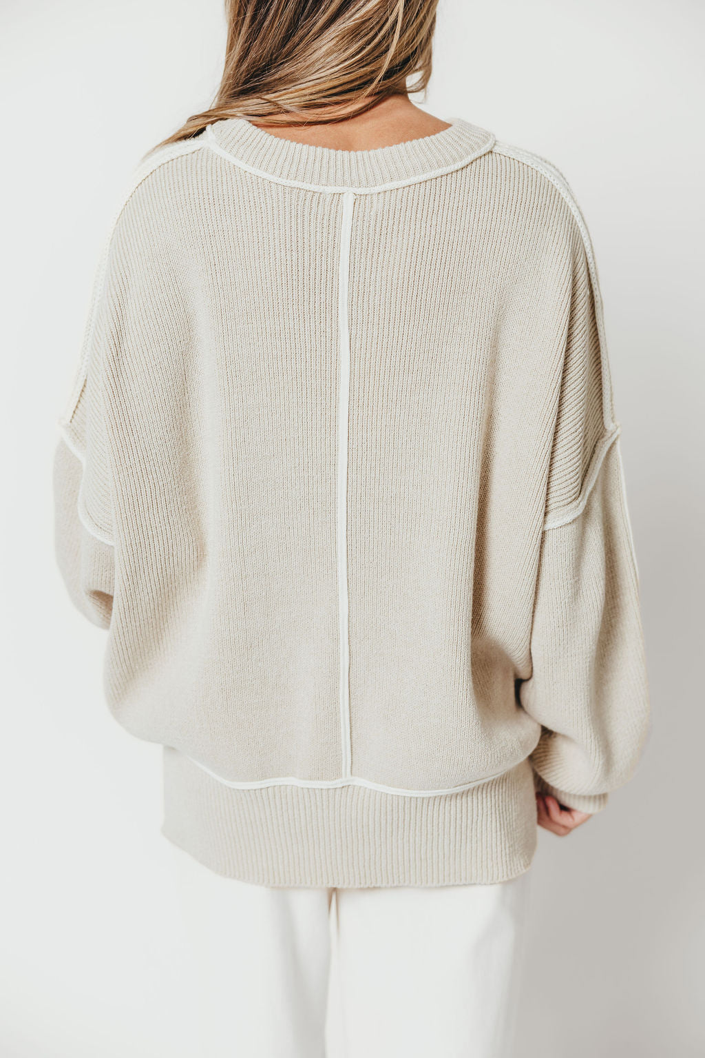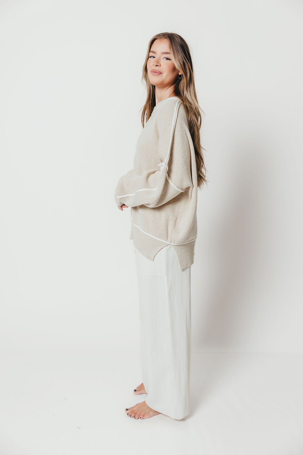 Shannon Ribbed Knit Exposed-Seam Oversize Sweater in Oatmeal
