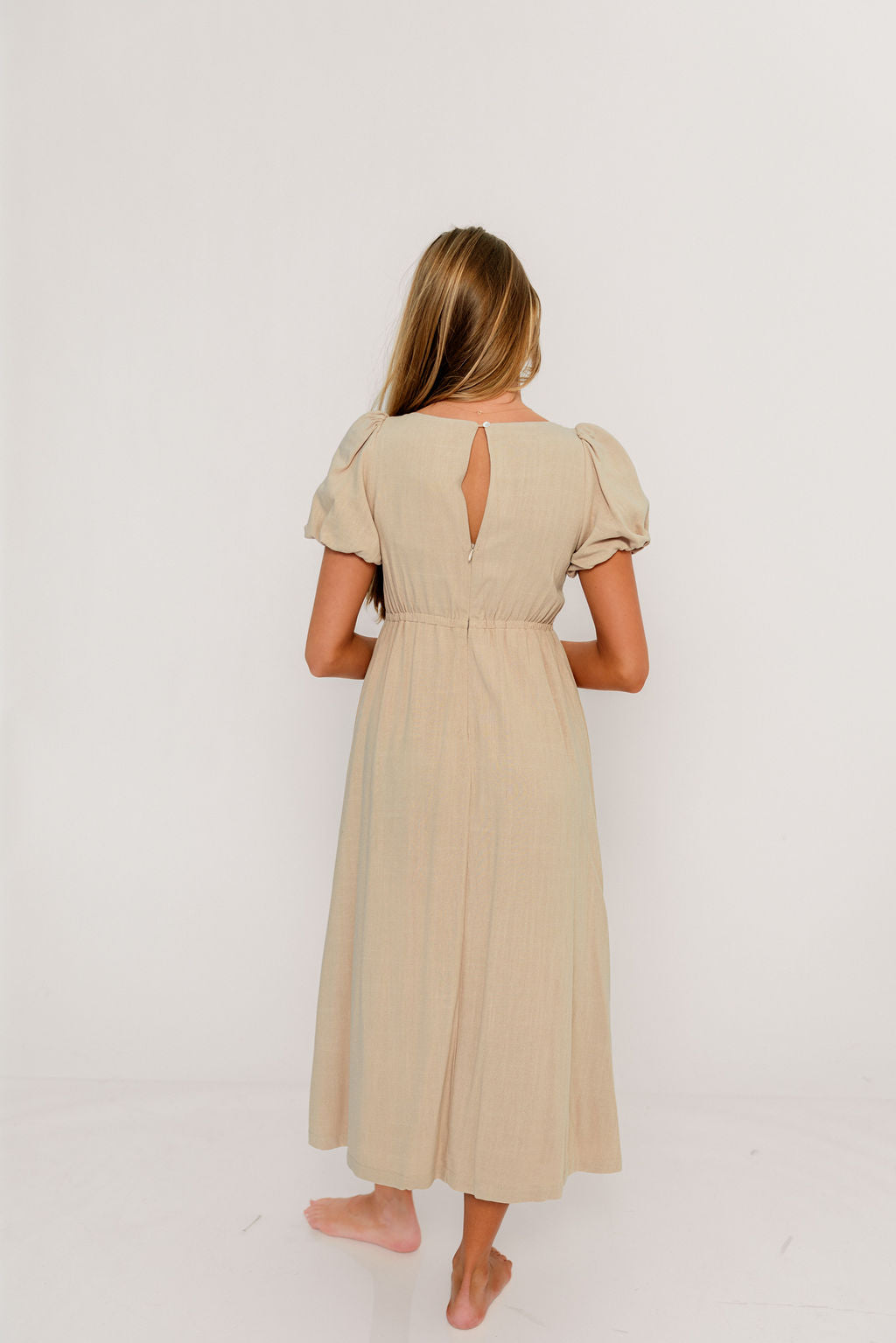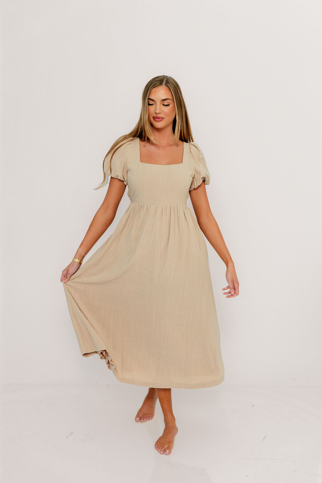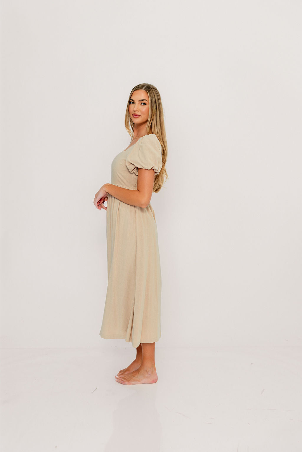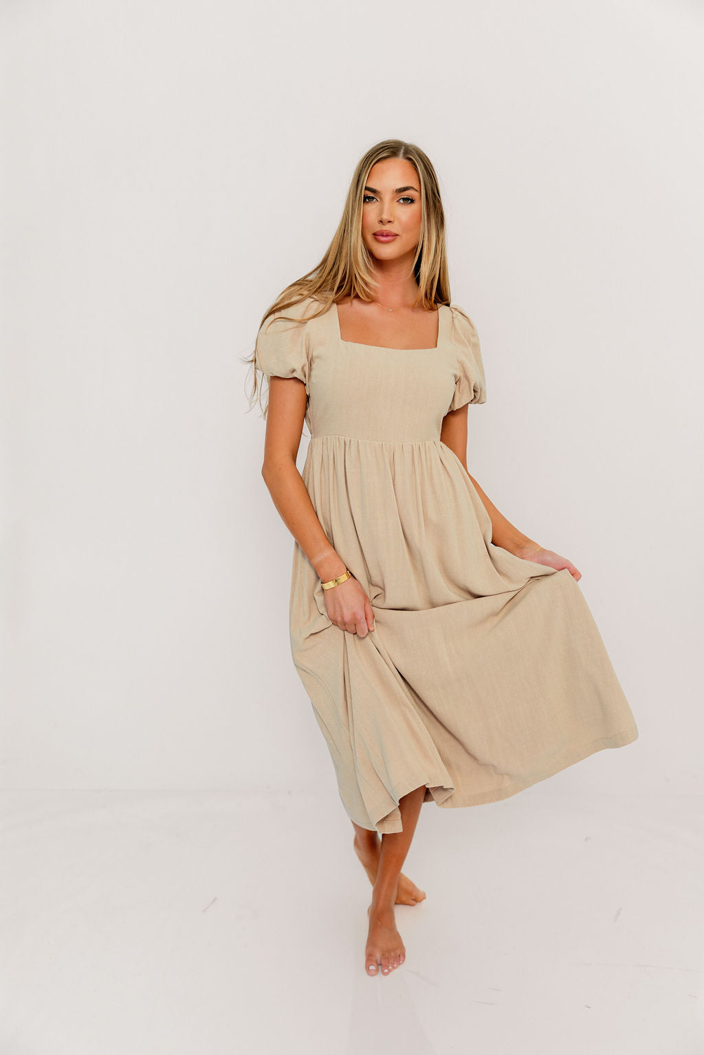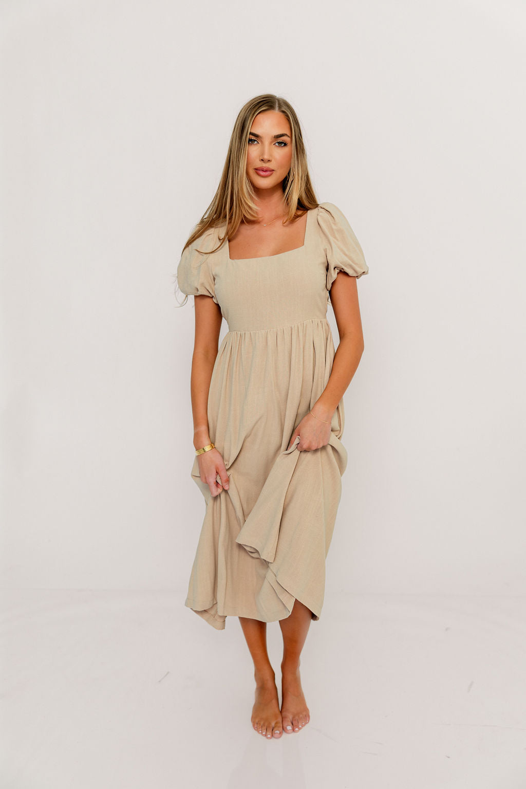 Ainsley Square Neck Midi Dress with Puffed Sleeves in Oat - Bump Friendly *2/25 PRE-ORDER*