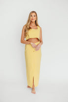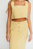 Sierra Linen Crop Top and Skirt Set in Light Yellow *Final-Sale*