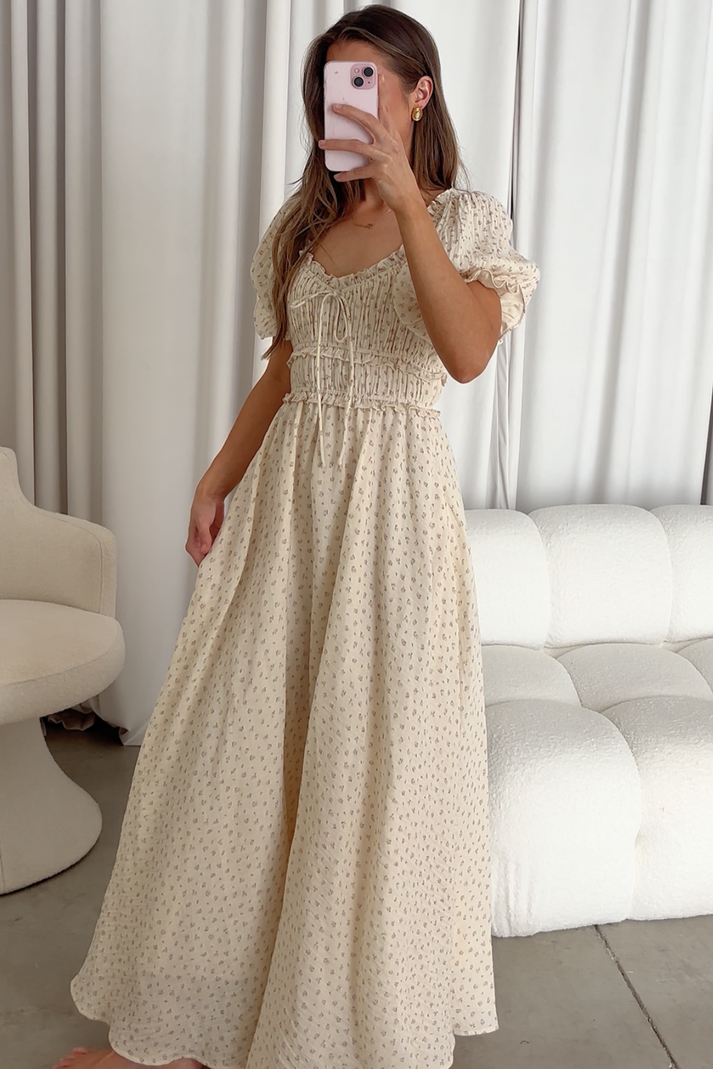 This is a PRE-ORDER for the Sydnee maxi dress in Blush Floral. It is expected to be delivered to our warehouse by 4/24. We will ship your order to you within 4 business days after we receive it. If there are any changes to the expected delivery date we will do our best to communicate it! If you need it for an event please email info@shopworthcollective.com so we can do our best to get it to you in time!
