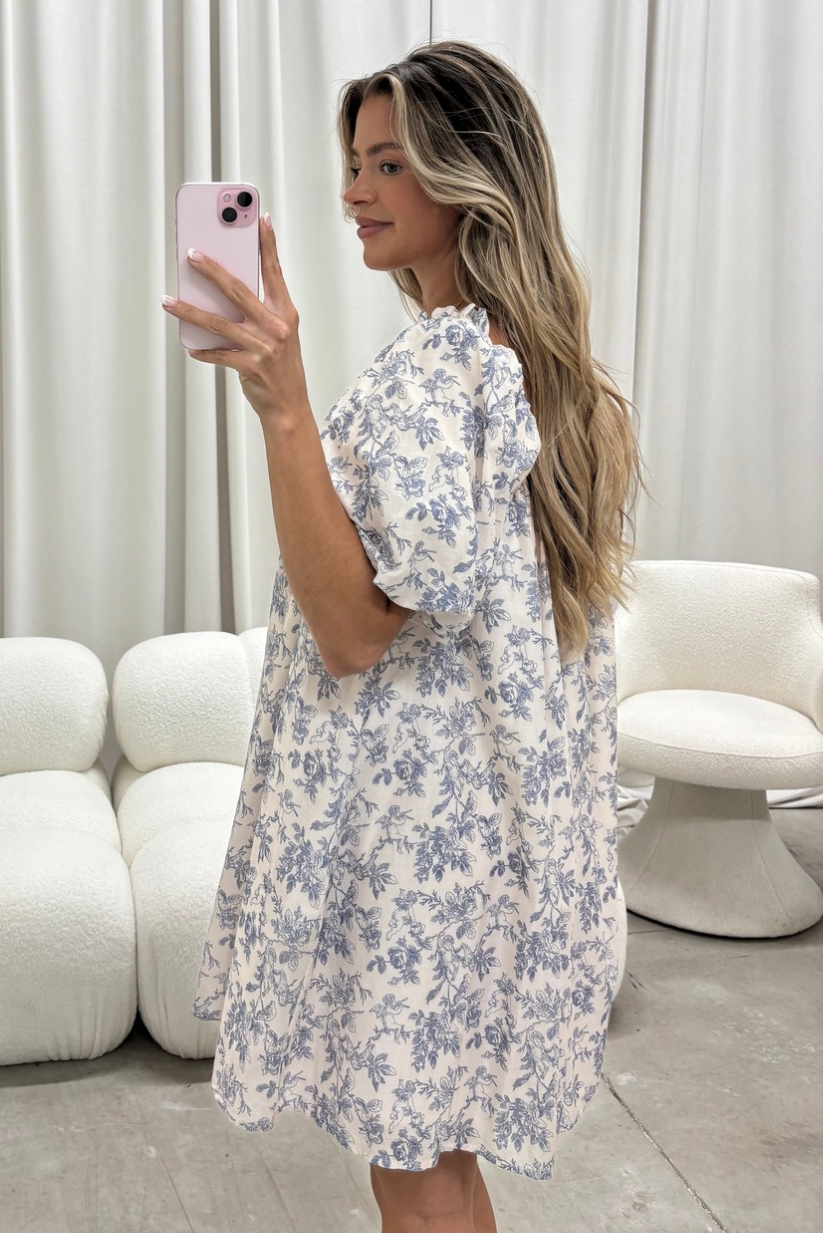 Malena Toile Print Mini Dress in Ivory *Final-Sale*
